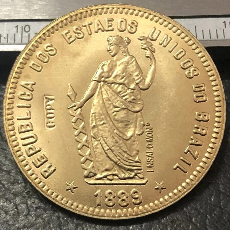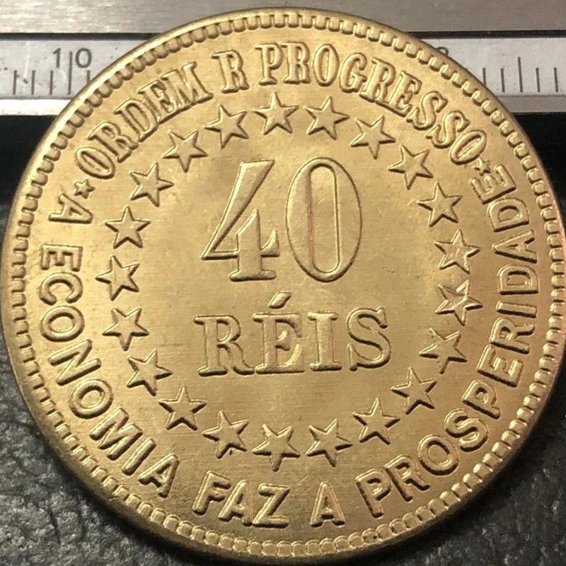 - Accurately modeled after the 1889 Brazil 40 Reis pattern coin with historic details and embossed motifs for an authentic vintage appearance.