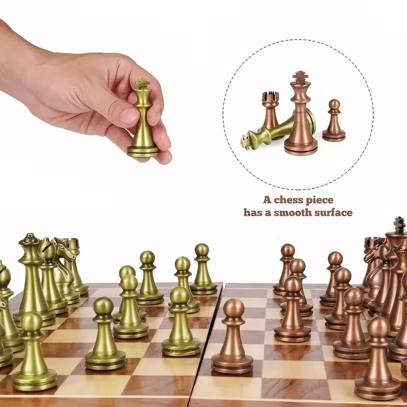 Indulge in the elegance of this high-end chess set, featuring a stunning 30cm/11.8inch antique bronze finish. Beautifully crafted with a solid wood foldable box, this set not only showcases timeless design but also brings sophistication to your game. The alloy weighted pieces ensure an optimal playing experience, making it perfect for both casual play and serious matches. Imagine the conversations sparked during your game nights, as you proudly display this exquisite set. It also makes a thoughtful Christmas holiday gift, bringing joy and elegance to any chess enthusiast’s collection.