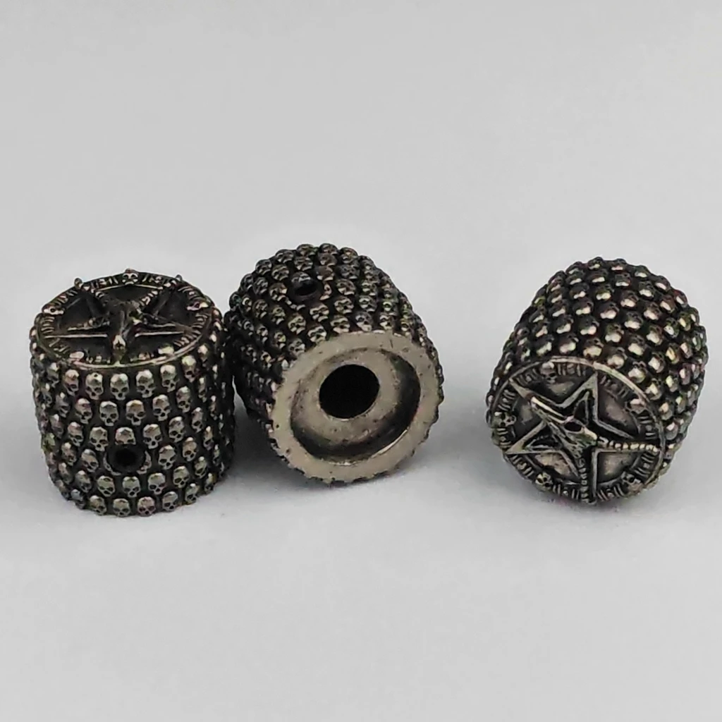 Imagine transforming your electric guitar or bass with this exquisite pair of antique bronze control knobs. Each knob is crafted with a textured surface embellished with small skull motifs, providing an edgy flair to your instrument. The rounded tops, featuring intricate star or pentagram designs, enhance the aesthetic appeal, making them a perfect choice for musicians looking to personalize their gear. With dimensions tailored for easy installation – a height of 20 mm and an outer diameter of 21 mm – fitting these knobs onto split shaft pots is a breeze. Durable and reliable, these knobs are not just replacements; they are enhancements that complement your musical journey.