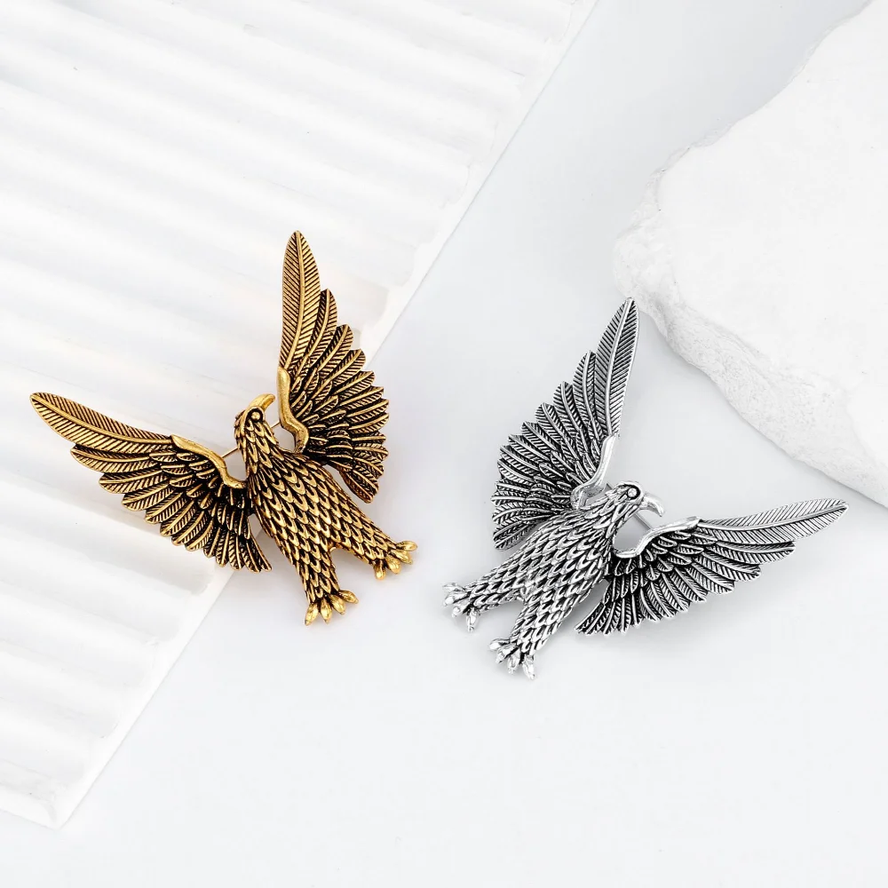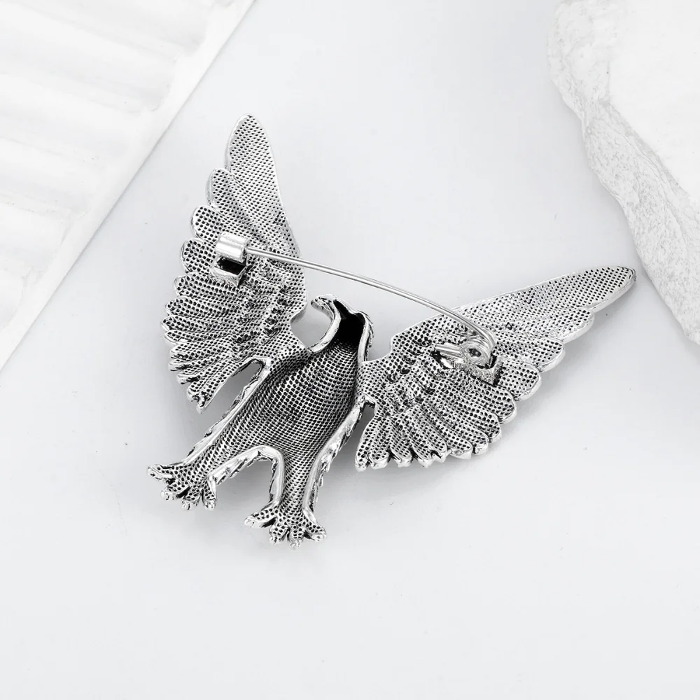 The antique eagle brooch is a stunning accessory crafted from alloy, measuring 5.9cm x 5.9cm (2.32″ x 2.32″). Its striking design features an eagle in flight, with intricate feather detailing that emphasizes its majestic appearance. Available in light grey and light green, this versatile brooch complements unisex styles, including retro, military, punk, and gothic fashion. Perfect for attaching to jackets, backpacks, hats, or for enhancing DIY clothing projects, it combines elegance with a unique vintage flair. The secure pin clasp at the back ensures easy attachment and durability for everyday wear.