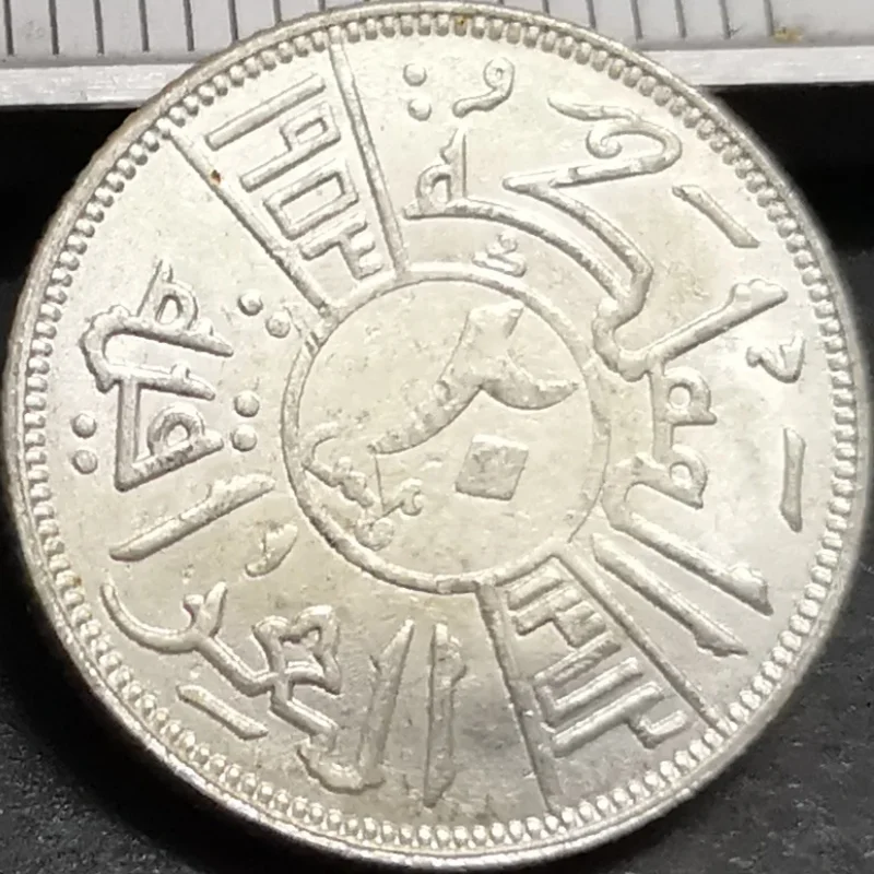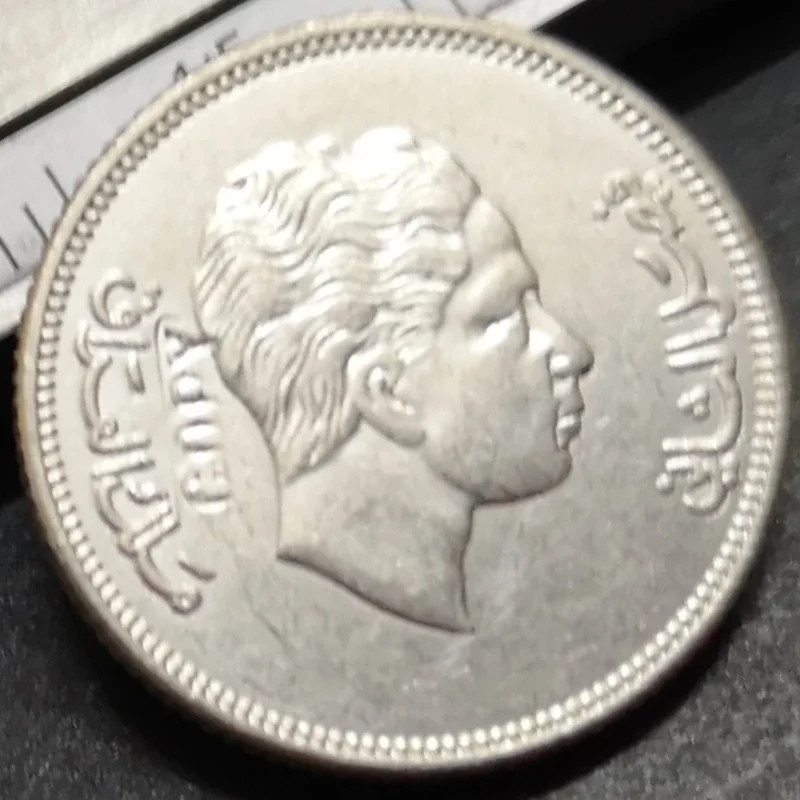 Step into history with this intricately crafted replica coin featuring Faisal II, the former king of Iraq. Measuring approximately 20mm in diameter, this coin boasts a polished, silver-like finish that shines with a vintage charm. The detailed portrait captures Faisal II with wavy hair and finely defined facial features, emulating the style of mid-20th century Iraqi coinage. The beaded border surrounding the portrait adds texture and elegance, enhancing its antique appeal. Inscribed in Arabic and English, it offers a genuine historical and decorative aesthetic, perfect for collectors or as a striking display piece. While this is a replica, it faithfully replicates the look of a historic collectible from the 1940s or 1950s, making it an ideal addition to any collection or decorative setting.