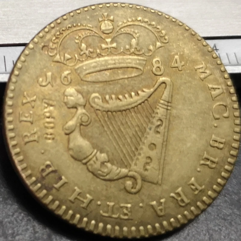- Designed as a high-quality replica of the 1684 Irish half penny, with detailed engravings and vintage finish.