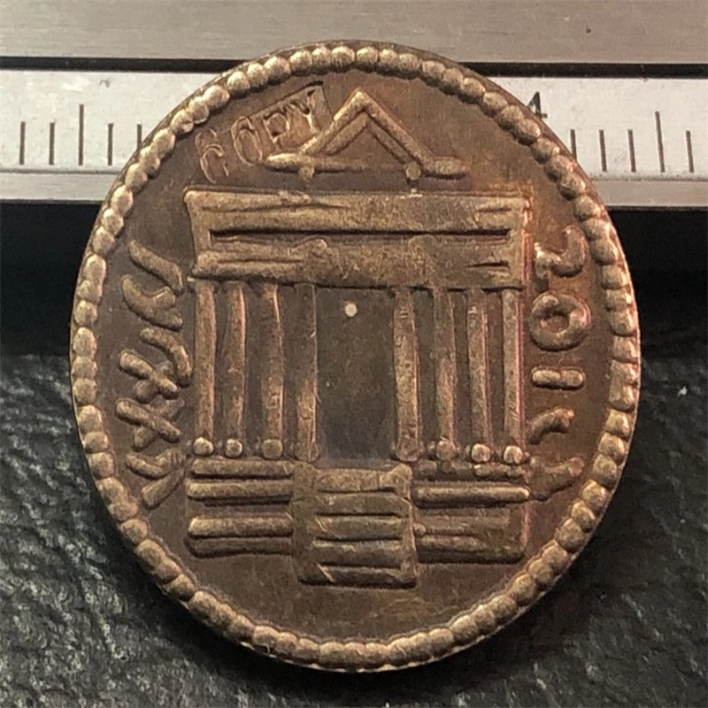This meticulously crafted replica coin from 60 BC to 46 BC features a Numidia Denarius depicting Juba I, cast in metal with an antique European style. Measuring approximately 1.2 centimeters in diameter, it showcases detailed portraiture of a bearded man wearing an elaborate, winged headdress, surrounded by worn stylized lettering on its rim. The surface boasts a tarnished, aged patina, textured to evoke a vintage, historical feel—making it an ideal collectible or decorative piece. Crafted using casting techniques from a period before 1840, this coin embodies regional European stylistic features, offering an authentic antique aesthetic as a premium copy, perfect for history enthusiasts and collectors.