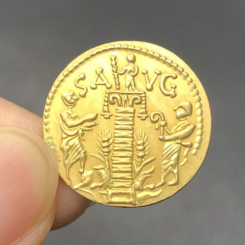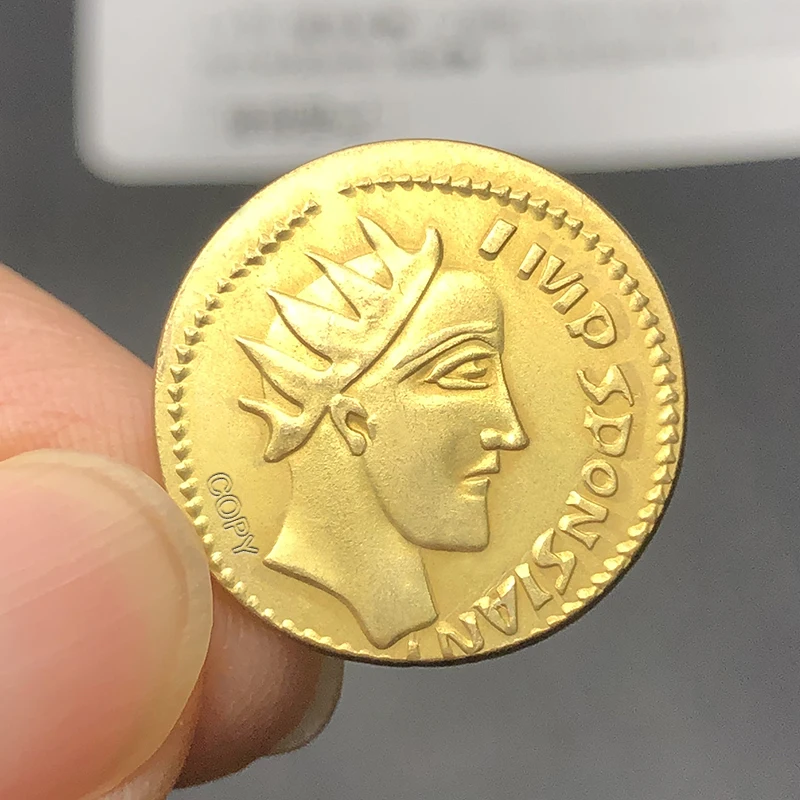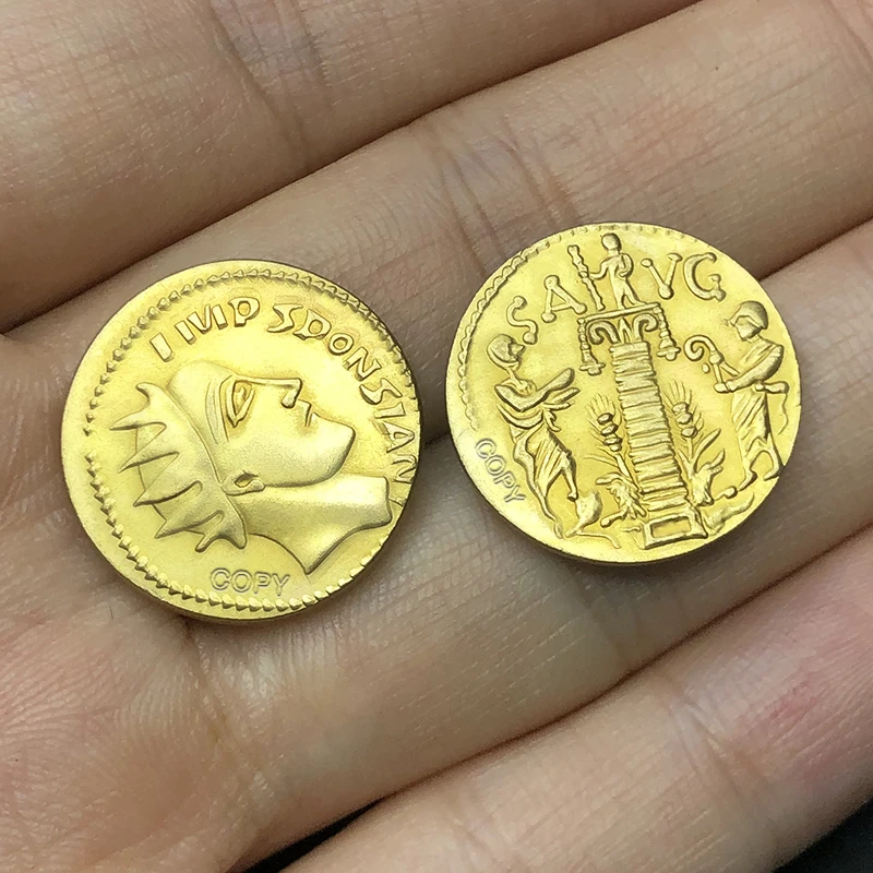 Immerse yourself in timeless elegance with this antique Roman gold necklace featuring a stunning 19mm embossed copper pendant. The pendant showcases intricate Roman and Greek motifs, including a prominent profile of a figure wearing a multi-pointed crown, surrounded by detailed floral patterns, decorative borders, and Latin-inspired inscriptions. Crafted from durable copper with a polished, high-shine gold-colored finish, it exudes vintage charm and craftsmanship. The textured beaded borders enhance its antique appeal, making this piece ideal for daily wear or special occasions. Feel the connection to history every time you wear it—a unique accessory that blends classical artistry with modern durability, perfect for those who appreciate heritage-inspired jewelry with a luxurious touch.
