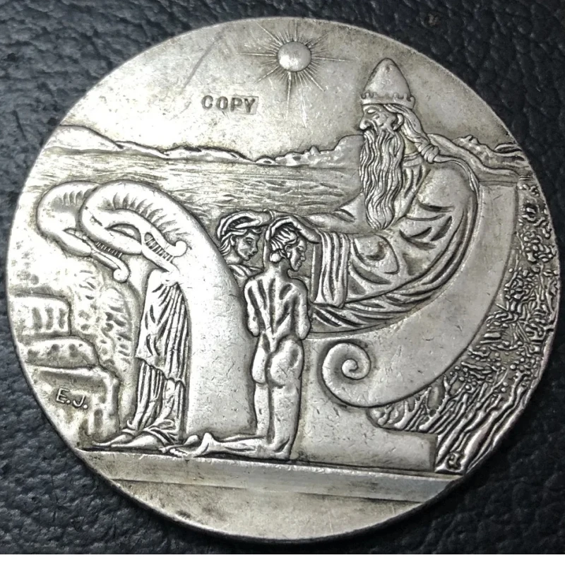 - Finished with a polished, silver-colored surface that mimics the patina and aged look of historic European coins, enhancing its vintage appeal.