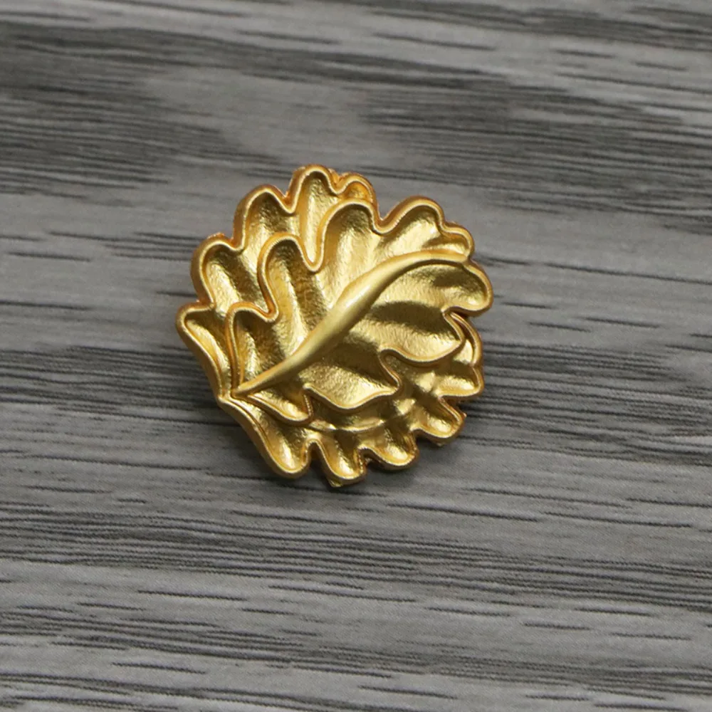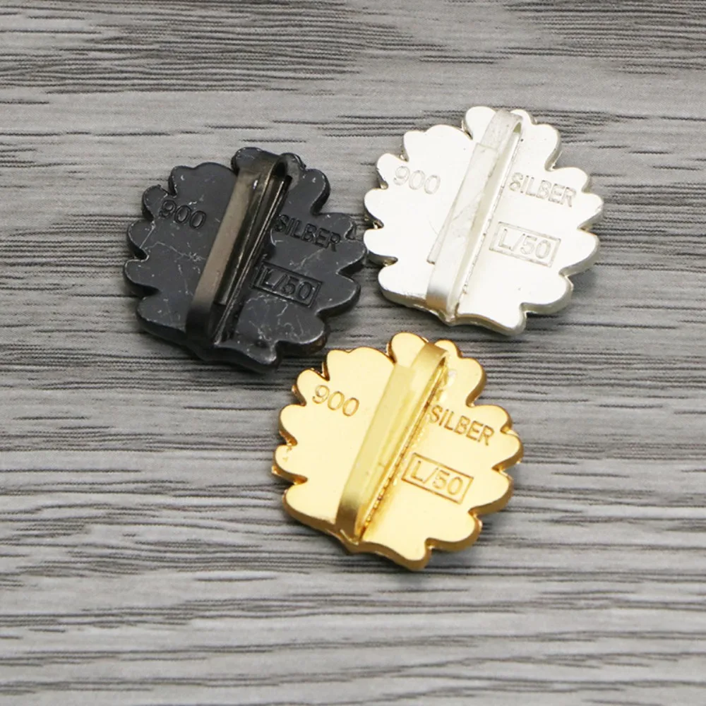 The antique silver oak leaf brooch is a striking accessory that showcases a vintage design, reminiscent of both military and patriotic styling. Measuring approximately 3 cm, this elegant piece features a lustrous gold finish, enhancing its bold yet refined appearance. Crafted from high-quality alloy metal, it mimics the intricate details of an oak leaf with realistic textures, including visible veins and undulating edges. This versatile brooch is suitable for both men and women, making it a perfect addition to jackets, backpacks, or hats while standing out as a distinctive fashion statement.
