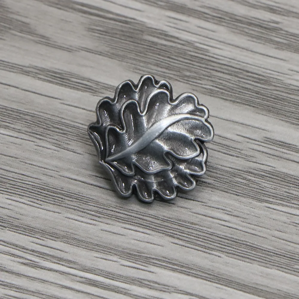 The antique silver oak leaves pin brooch is a striking accessory that effortlessly elevates any outfit. Made from a durable alloy, this brooch showcases a polished and shiny finish that captures the eye. It features intricately layered oak leaves with distinctive veining and finely detailed edges, creating a compelling three-dimensional effect. Measuring approximately 3 cm in diameter, it is perfectly sized for versatile wear on jackets, backpacks, hats, or even for your DIY clothing projects. The retro, military, and patriotic style of this brooch makes it a fantastic addition to any wardrobe, promising to make a bold statement wherever you go.