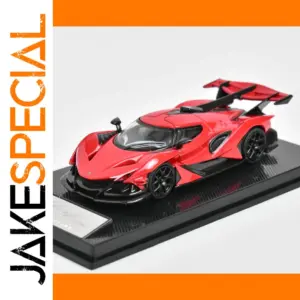Experience the thrill of owning this meticulously crafted replica of the Apollo Intensa Emozione (IE). Designed for enthusiasts and collectors, this 1:64 scale model exudes sporty elegance with its vivid red finish and sleek, aerodynamic lines. The glossy surface reflects light beautifully, highlighting the intricate details and craftsmanship. Black accents on the grille, air intakes, and side skirts create a striking contrast that enhances its aggressive and race-inspired appearance. The model features multi-spoke black wheels with low-profile tires, complementing the low-slung, dynamic stance. The rear wing, supported by vertical fins, and detailed diffuser emphasize its high-performance design, making it a true collector's piece that captures the essence of the iconic supercar’s beauty and power.