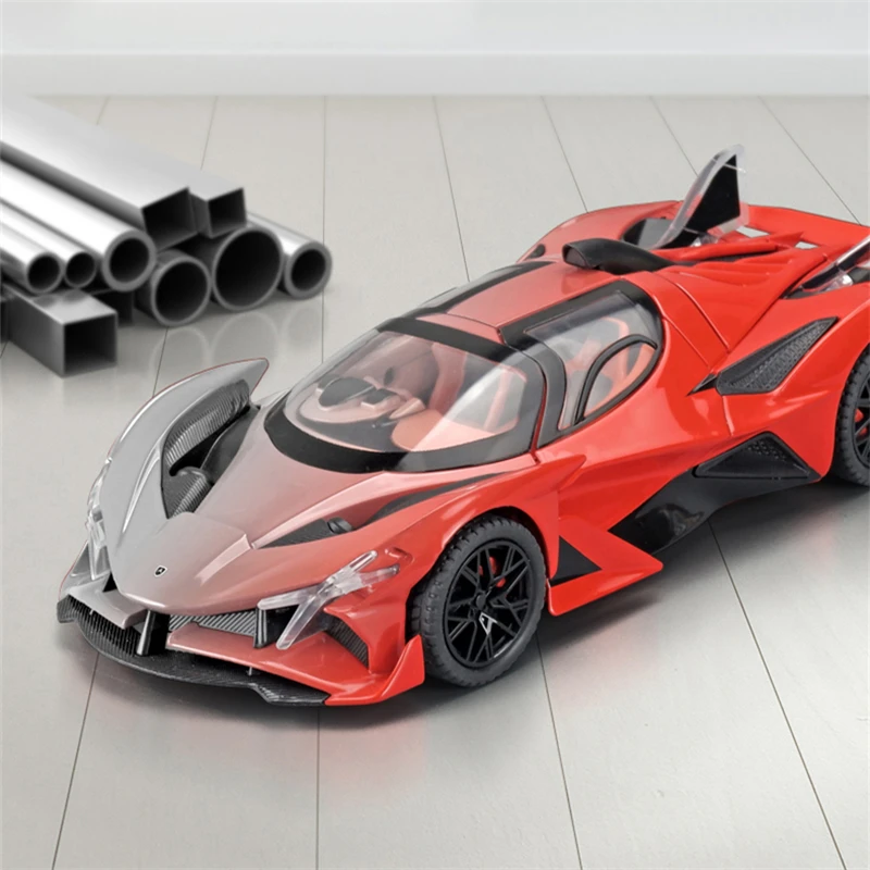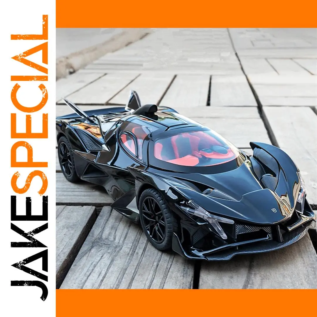 - Scaled precisely at 1:24, the model features intricate aerodynamic contours, angular headlights, prominent air intakes, and a low stance for an authentic racing aesthetic.