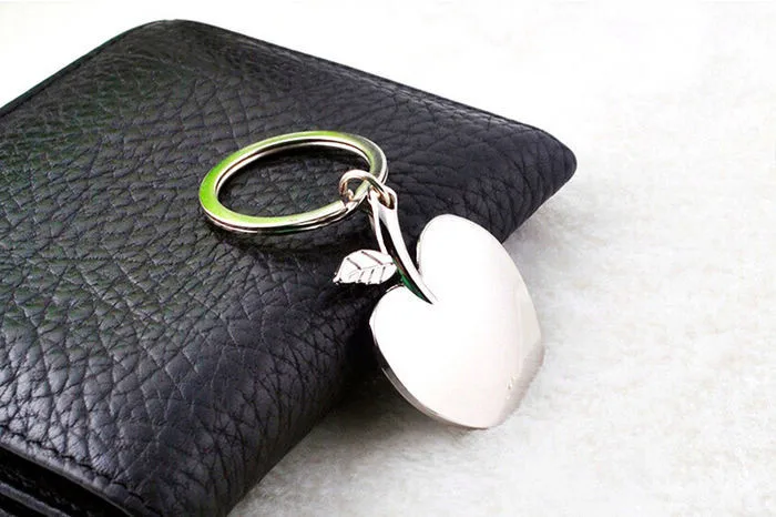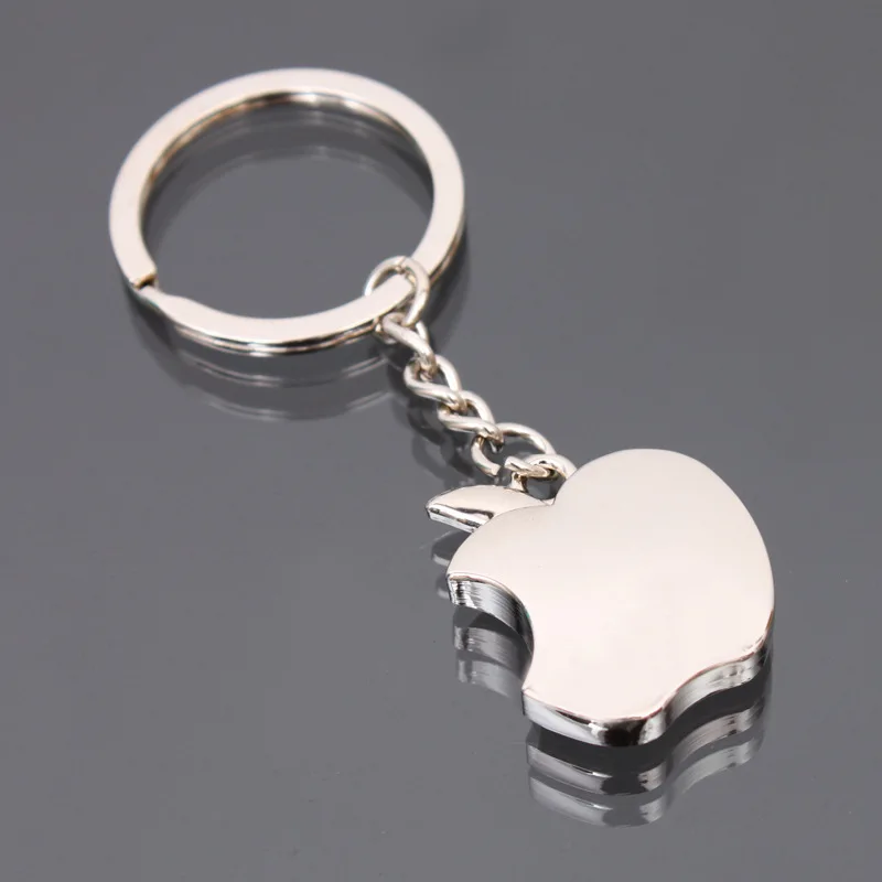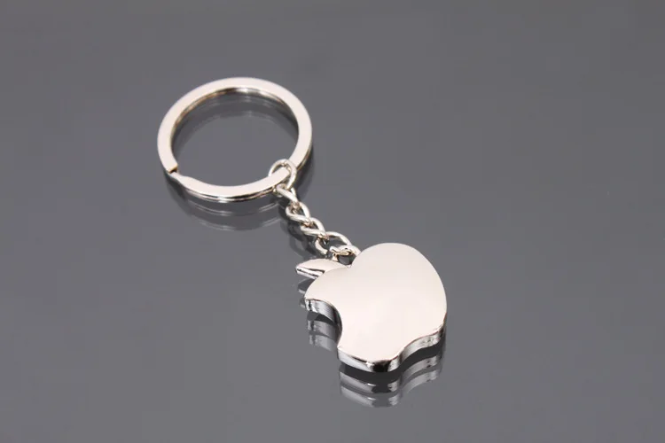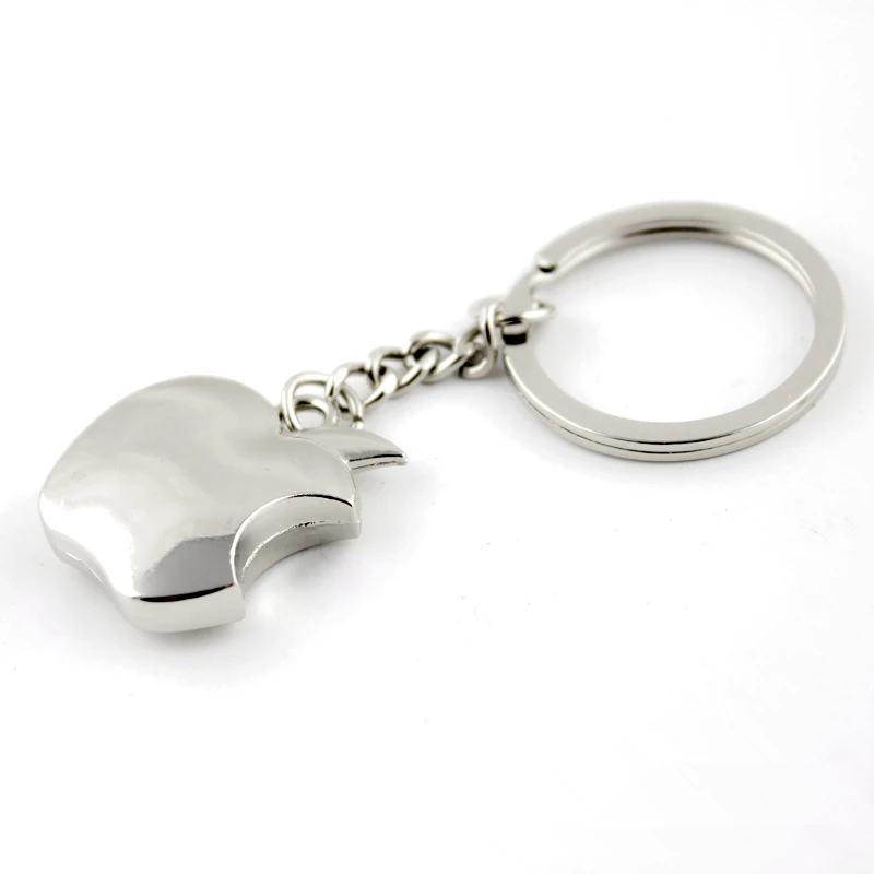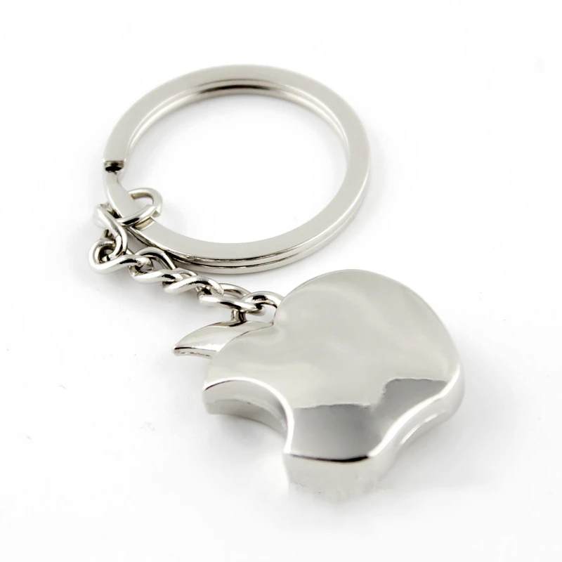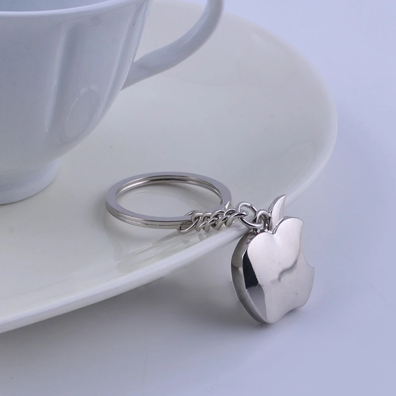 - This unisex keychain features a 3D apple shape with a bite mark, crafted from zinc alloy with a polished rhodium coating for durability and a sleek, shiny appearance.