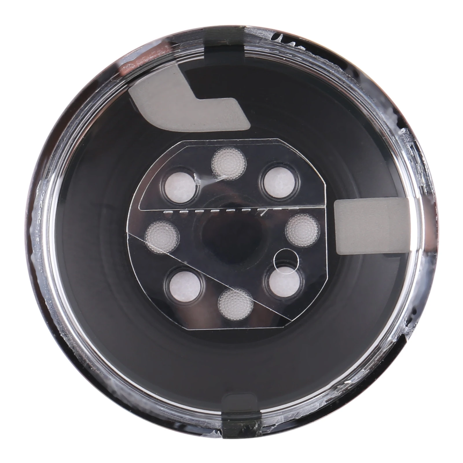 Imagine restoring your Apple Watch to its original sleek look with this meticulously crafted back cover glass designed for Apple Watch Series 6, 7, and 8 in 44mm and 45mm sizes. Featuring a polished, metallic outer rim with a shiny, reflective finish, it adds a touch of modern elegance. The matte dark grey or black center surface, accented by six precisely positioned circular cut-outs in a hexagonal pattern, showcases a blend of technical precision and aesthetic appeal. Surrounding these cut-outs are textured white pads, providing visual contrast and functional support for sensors. This high-quality OEM-style replacement ensures your device maintains its sophisticated appearance and functionality, making it perfect for restoring a damaged or broken back cover.