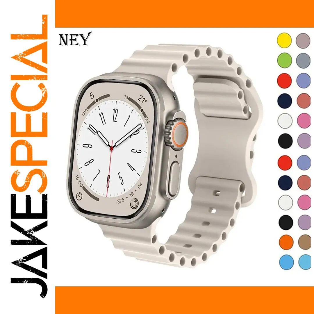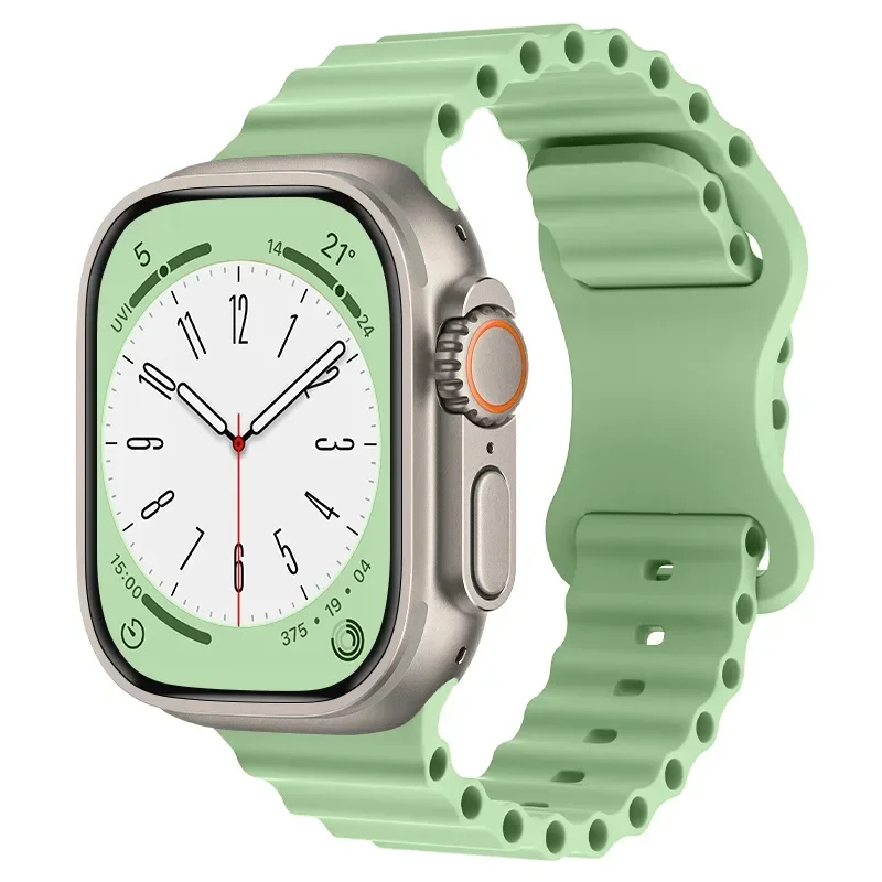 Experience the perfect blend of comfort and style with this this Sport Ocean strap designed for Apple Watch. Crafted from durable rubber, it offers a lightweight, flexible fit suitable for active lifestyles and casual wear. The strap’s sleek look is complemented by a single alpine trail loop clasp, ensuring a secure fit while adding a sporty touch. Available in a vibrant palette including Midnight Blue, white, Alfalfa grass, Starlight, Pistachio, orange, black, red, and yellow, you can easily match your mood or outfit. With its adjustable design and compatibility with various case sizes from 38mm to 49mm, this strap enhances your Apple Watch for everyday use. Its versatile aesthetic makes it ideal whether you're working out, running errands, or relaxing at home.