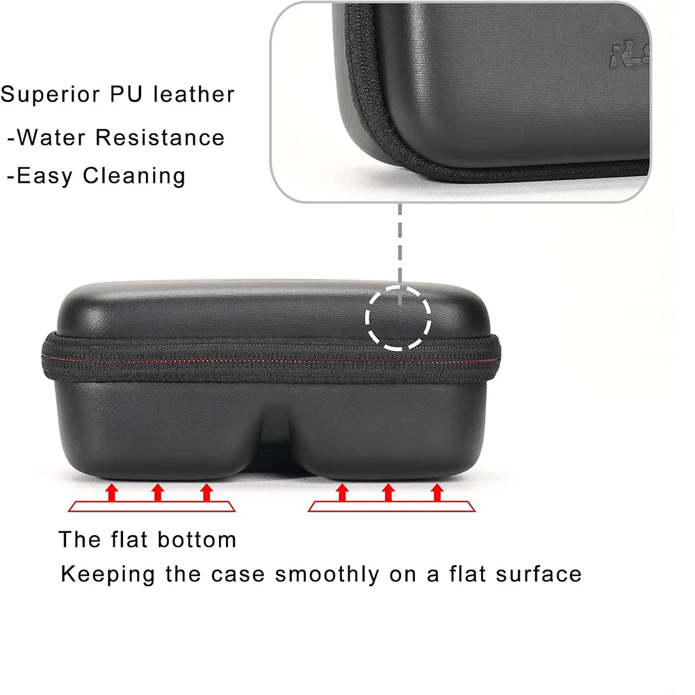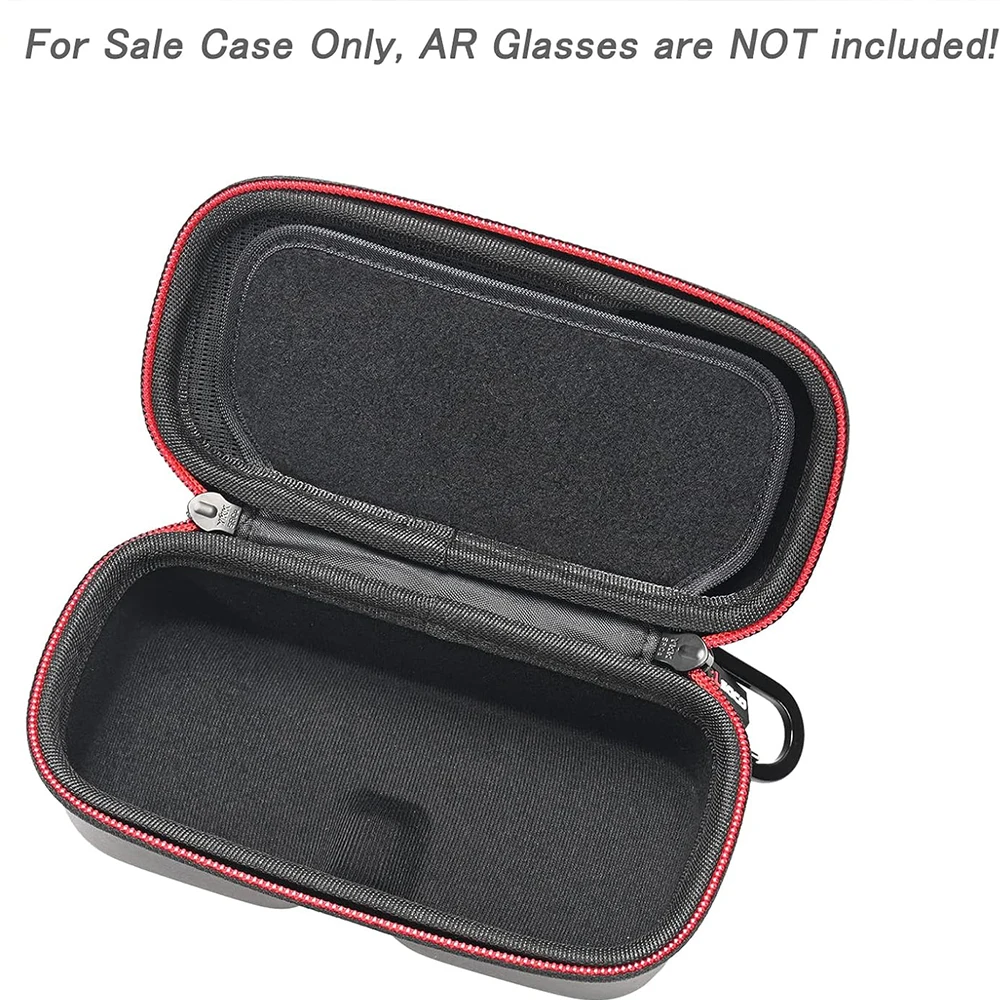 Picture yourself confidently protecting your high-tech AR glasses with this stylish, durable case. Its sleek oval shape, lined with soft black foam inside, ensures your glasses stay scratch-free and well-cushioned from shocks. Crafted from eco-friendly EVA foam combined with premium PU leather, the exterior boasts a matte black finish accented by a contrasting black and red zipper trim, adding a touch of modern sophistication. The inclusion of a sturdy metal carabiner makes it easy to attach to your bag or belt, perfect for on-the-go lifestyles. Its compact design fits comfortably in backpacks and luggage, making travel hassle-free. Trust this case to safeguard your valued AR glasses while accentuating your professional and urban style.