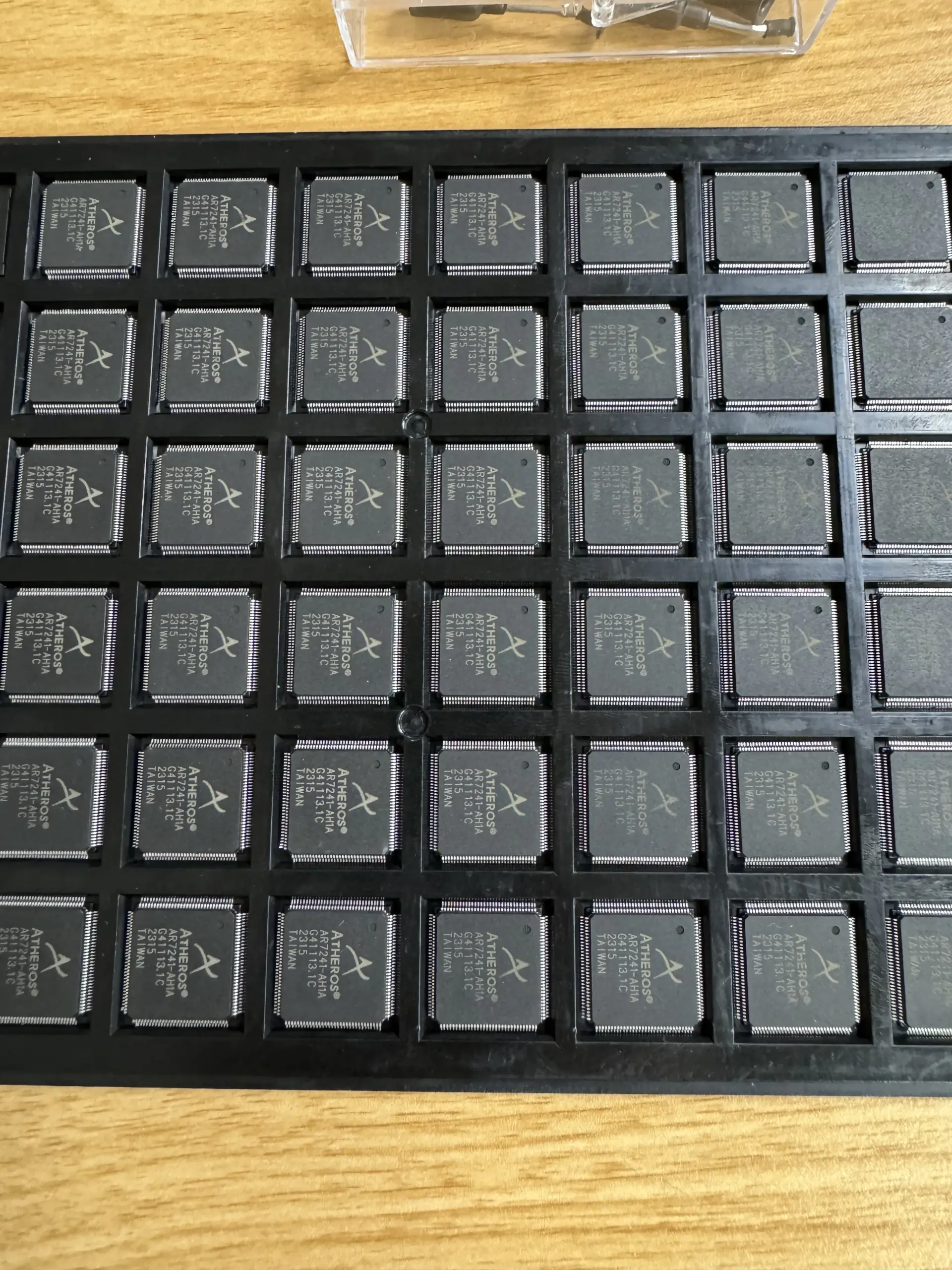 Imagine enhancing your electronic projects with this high-quality AR7241-AH1A router IC, meticulously designed for optimal performance in router applications. With a sleek QFP-128 package, this component features 128 precise pins that facilitate efficient connectivity and seamless integration into your device. Its flat, metallic surface echoes a modern, industrial aesthetic, reflecting professionalism and reliability. Organized neatly within a black anti-static foam tray, this set of five chips guarantees consistency and trustworthiness, making it an ideal choice for professional or hobbyist projects. Whether upgrading existing systems or building new, this high-grade IC delivers dependable, top-tier performance that you can rely on, helping bring your technical ideas to life with confidence.