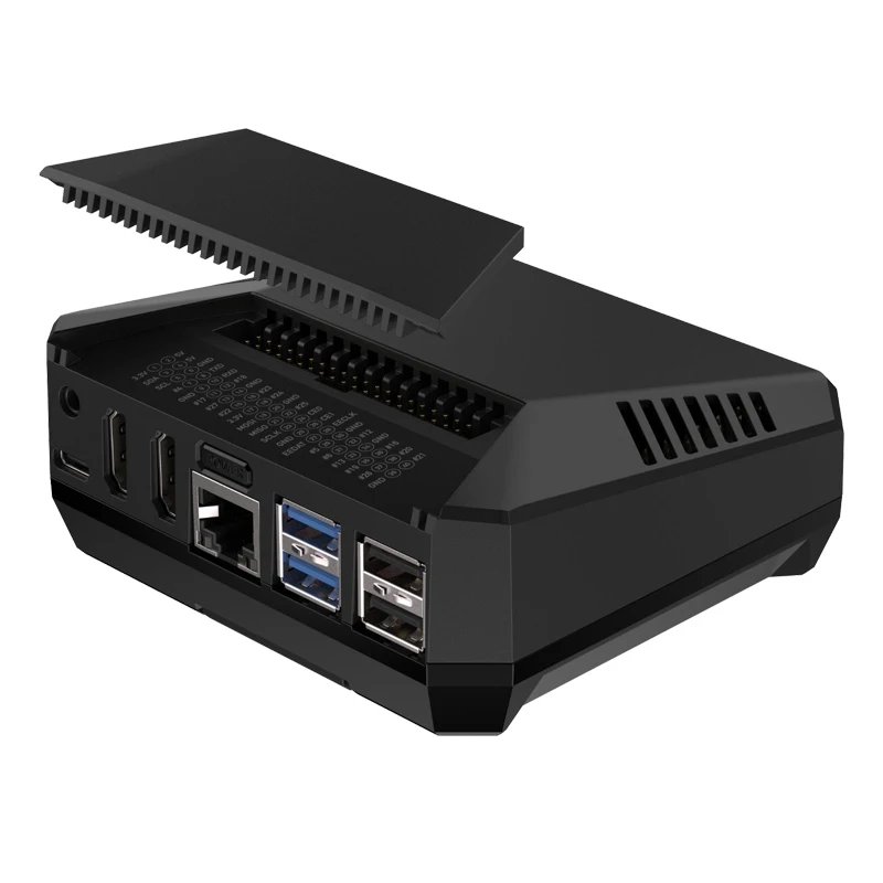 Experience the perfect blend of style and functionality with this this Argon ONE V3 M.2 NVMe case for Raspberry Pi 5. Crafted from a sleek, durable aluminum shell with a matte black finish, this case offers a modern, industrial look that complements any setup. Its precise angular design features multiple ventilation slits on the top surface, ensuring optimal airflow through the built-in PWM fan cooler. Designed to house the Raspberry Pi 5 along with an M.2 NVMe PCIe SSD, this enclosure enhances performance and thermal management. Whether you’re upgrading your media center, professional server, or development environment, this case provides both aesthetic appeal and robust protection for your device.