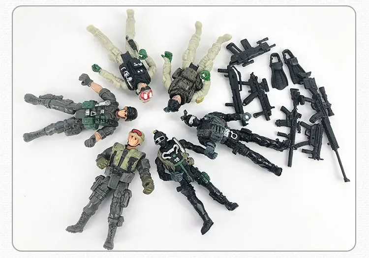 Imagine displaying this exceptional collection of six articulated movable soldier models, each standing proudly at 10 cm tall. Crafted from durable plastic, these figures capture the essence of military precision and style. With attention to detail in their tactical gear, such as vests with pouches and an array of weaponry, every model tells a story of valor and readiness. Their distinct poses and expressions add life to your collection, whether you’re an enthusiast of military memorabilia or passionate about intricate model displays. The set is perfect for showcasing different military themes from movies and TV, making it a striking addition to any display.