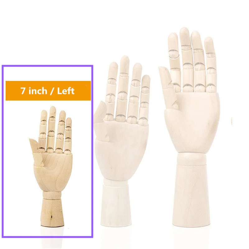 Discover the beauty of craftsmanship with this set of wooden artist mannequins and hand models. Each piece features warm, natural wood tones with smooth surfaces that highlight artisanal detail. Their jointed limbs can rotate and bend, allowing you to pose them in realistic postures for drawing, photography, or creative projects. The collection includes various sizes such as 5-inch, 7-inch, 8-inch, and 12-inch body models, along with corresponding hand models, ranging from 7-inch to 12-inch lengths—perfect for detailed work. These figures are designed to mimic human movement elegantly, offering endless possibilities for artists and hobbyists alike. Their simple, organic aesthetic enhances any studio or workspace with a touch of timeless art.