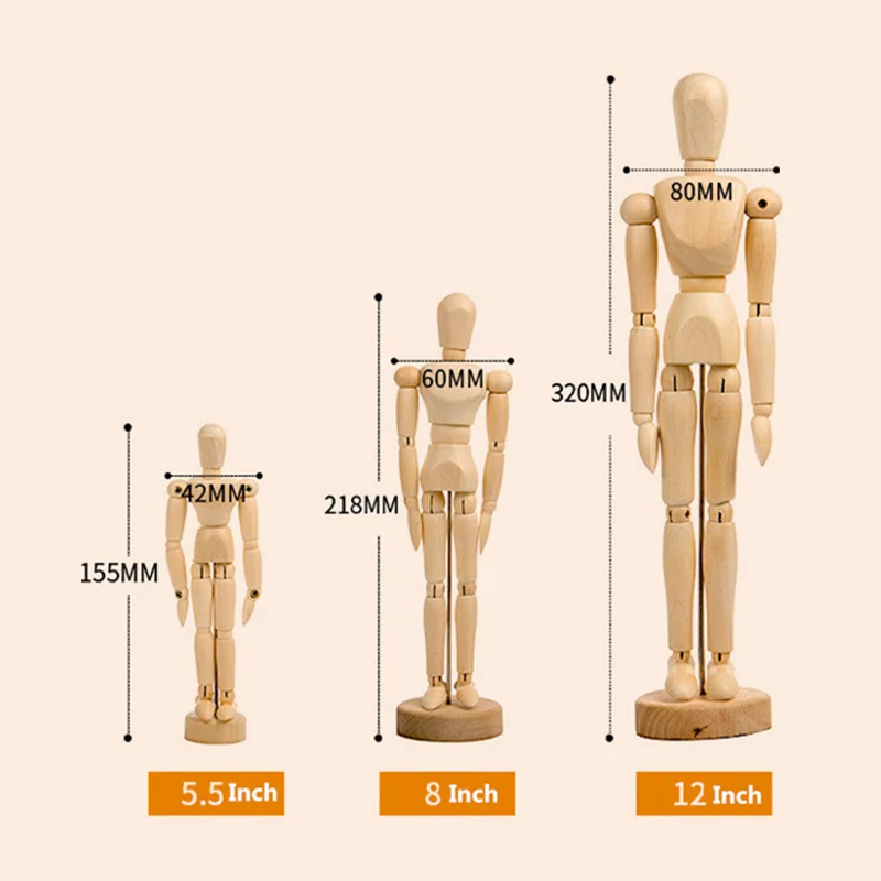 Transform your creative process with these elegant, flexible wooden mannequins—ideal for practicing poses, staging scenes, or decorating your space. Experience the joy of realistic movement and organic aesthetic that enhances your artistic projects or workspace. Don't wait — own this meticulously crafted collection today and bring your imagination to life. These figures are ready to serve as your trusted partners in any artistic endeavor, offering both functionality and timeless style. Elevate your craft with these artisanal models now!