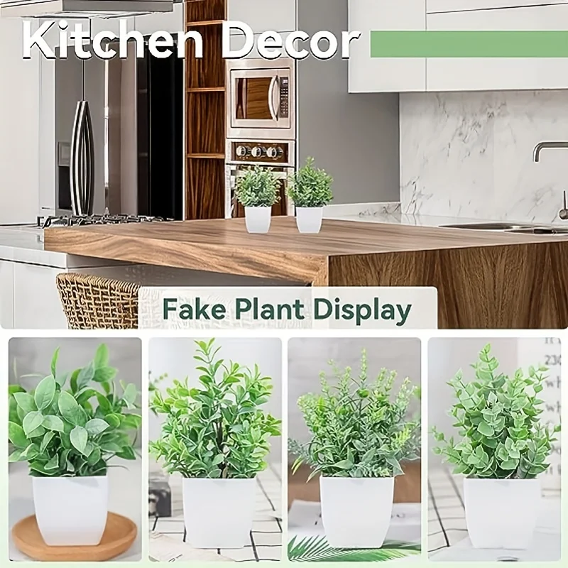 Enhance your space with this set of four artificial bonsai plants crafted from durable plastic, featuring vibrant green foliage in varied, realistic styles. Each plant boasts a sleek, modern white square pot, making them perfect for decorating desktops, shelves, or any indoor and outdoor setting. Designed for versatile use in farmhouse, bedroom, living room, or bathroom decor, these simulation bonsai plants add a natural touch without the maintenance of real trees. Ideal for anniversaries, exhibitions, or everyday elegance, their lush, full appearance brings a calming, fresh ambiance to your environment, creating a sophisticated and inviting atmosphere that you can enjoy year-round.