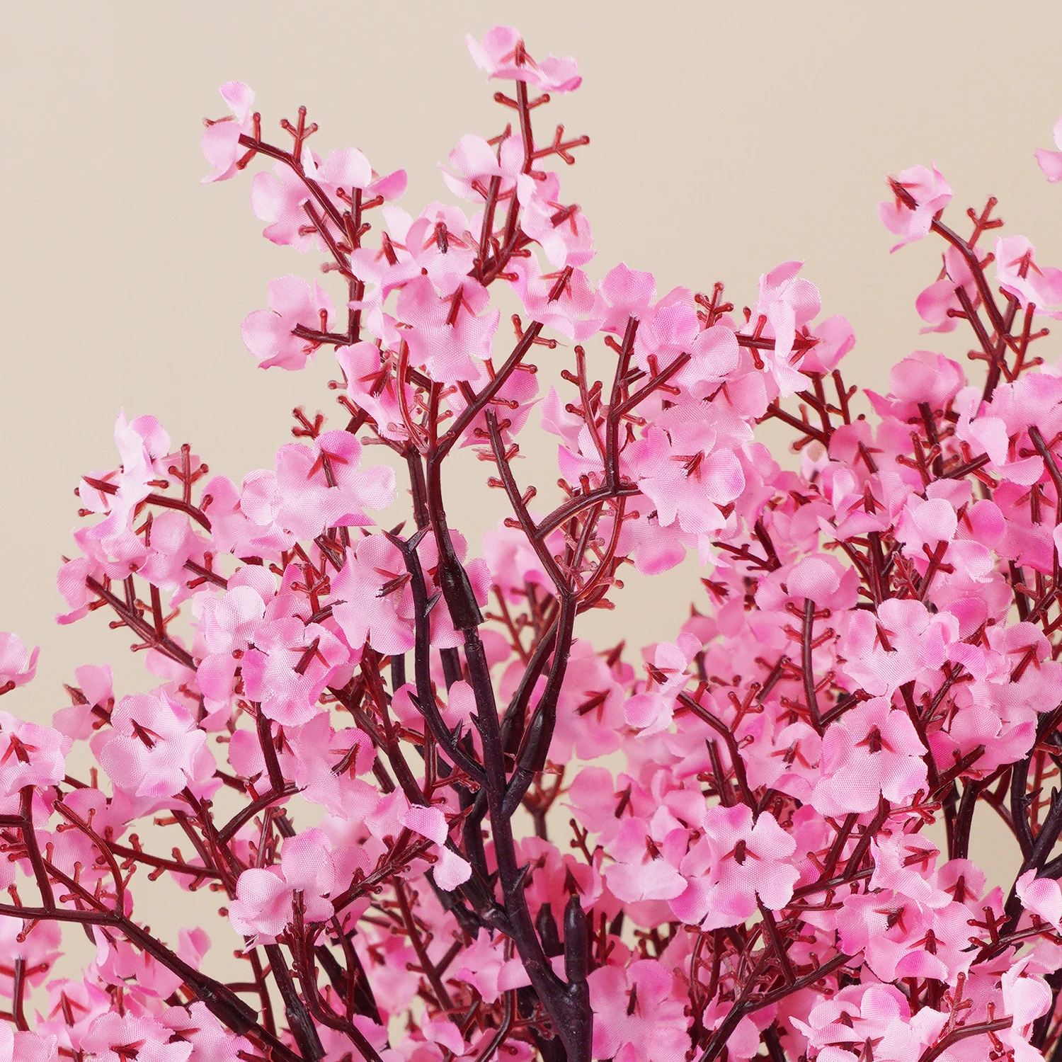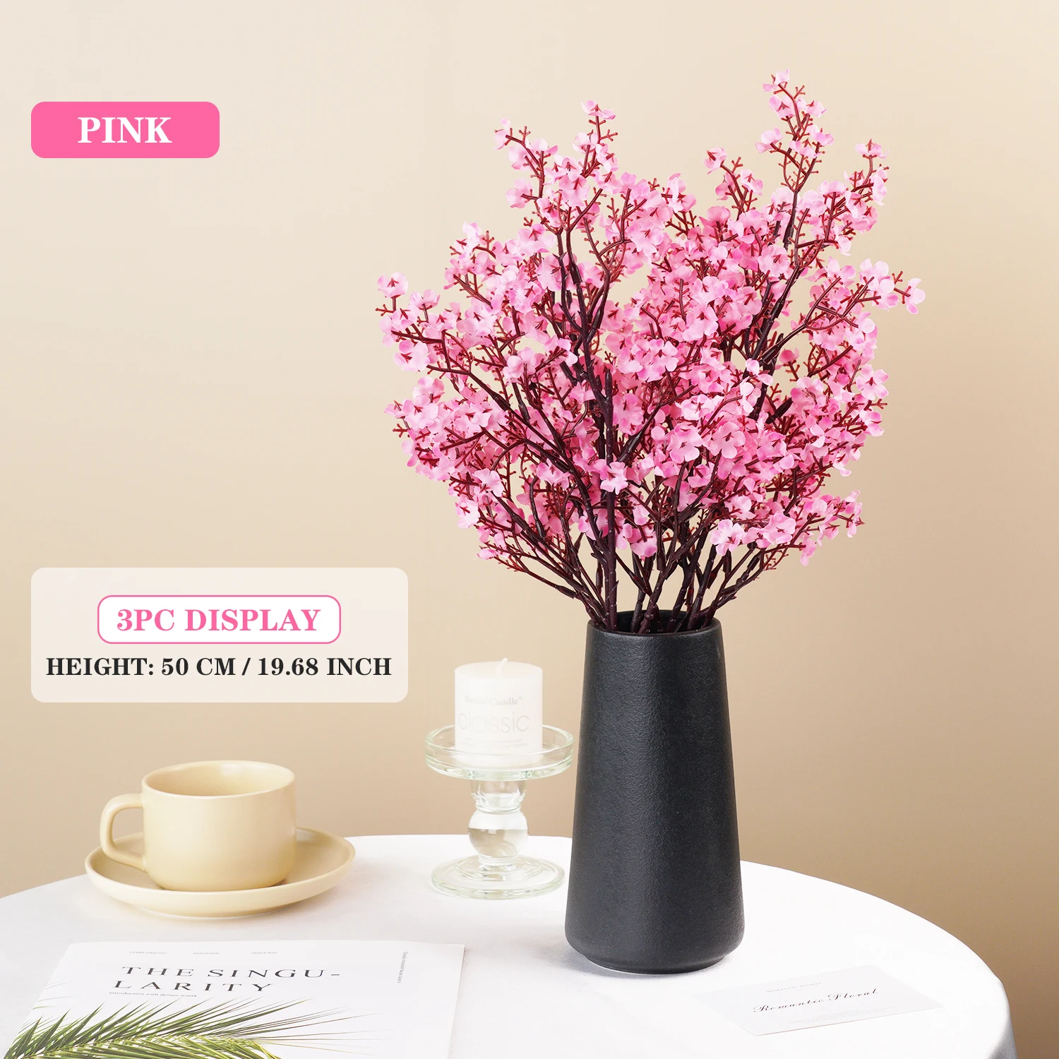 Enhance your decor with this 50cm artificial gypsophila (baby’s breath) bouquet, featuring five flexible plastic branches that can be customized to your liking. The vibrant, realistic pink blossoms are densely packed, creating a lush, full appearance ideal for home, wedding, or event decorating. Available in multiple colors from HG92-01 to HG92-07, this durable and reusable arrangement adds a touch of elegance and freshness to any indoor setting. Its natural-looking design and bendable branches make it perfect for creating beautiful floral displays for special occasions or everyday decor, making your space feel lively and inviting.