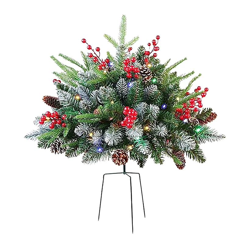 - Designed with sturdy metal stakes, these trees are easy to secure outdoors, ensuring stability on steps, porch areas, or garden beds; battery operation offers flexible placement without cords.