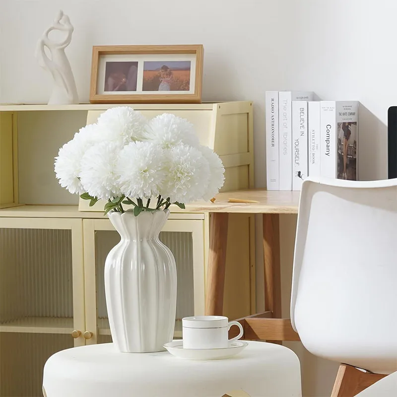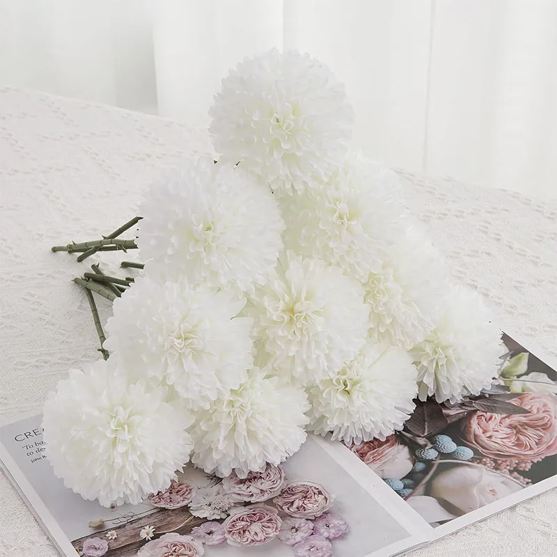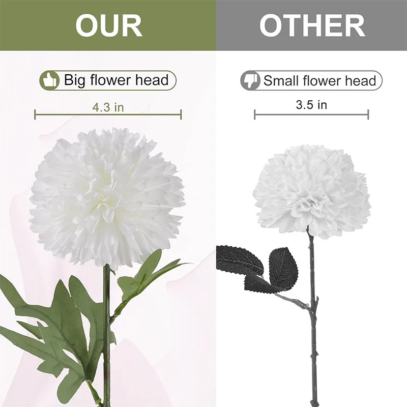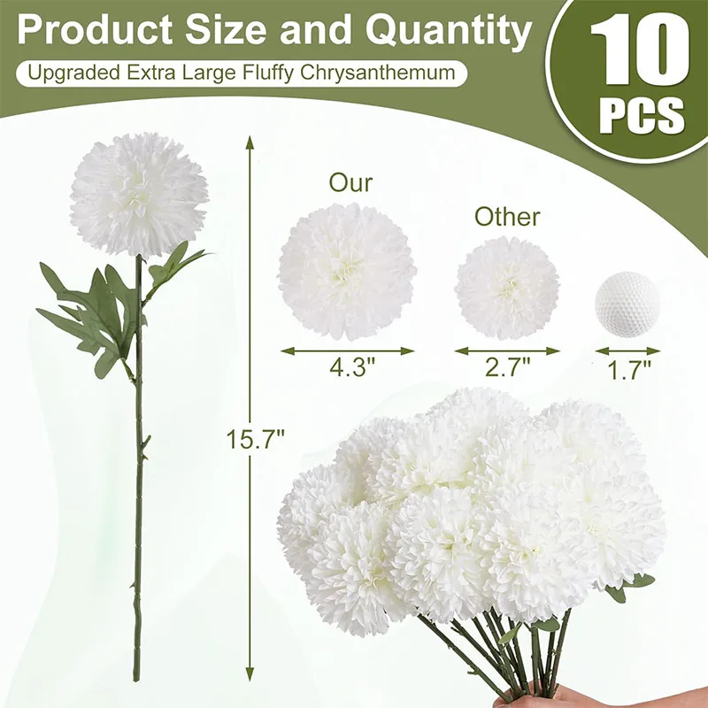 - Each of the 10 large artificial chrysanthemum flowers measures 4.3″ in diameter, with densely packed ruffled petals that provide a voluminous and full appearance for elegant decor.