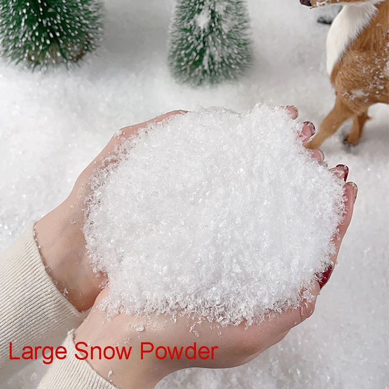 Transform your holiday décor with this beautiful artificial dry snow powder, perfect for creating a magical winter scene. Whether you're decorating your home, party space, or craft project, its fluffy, fine texture mimics real snow, adding a fresh, festive touch. Available in large and small snow powder, with options of 10g, 20g, 50g, and 100g, you can easily customize your display. Imagine a cozy winter landscape featuring tiny green trees dusted in white, with scenes that evoke warmth and cheer. Lightweight and easy to work with, this snow never clumps or melts, making your decorations look fresh throughout the season. A must-have for holiday DIY projects.