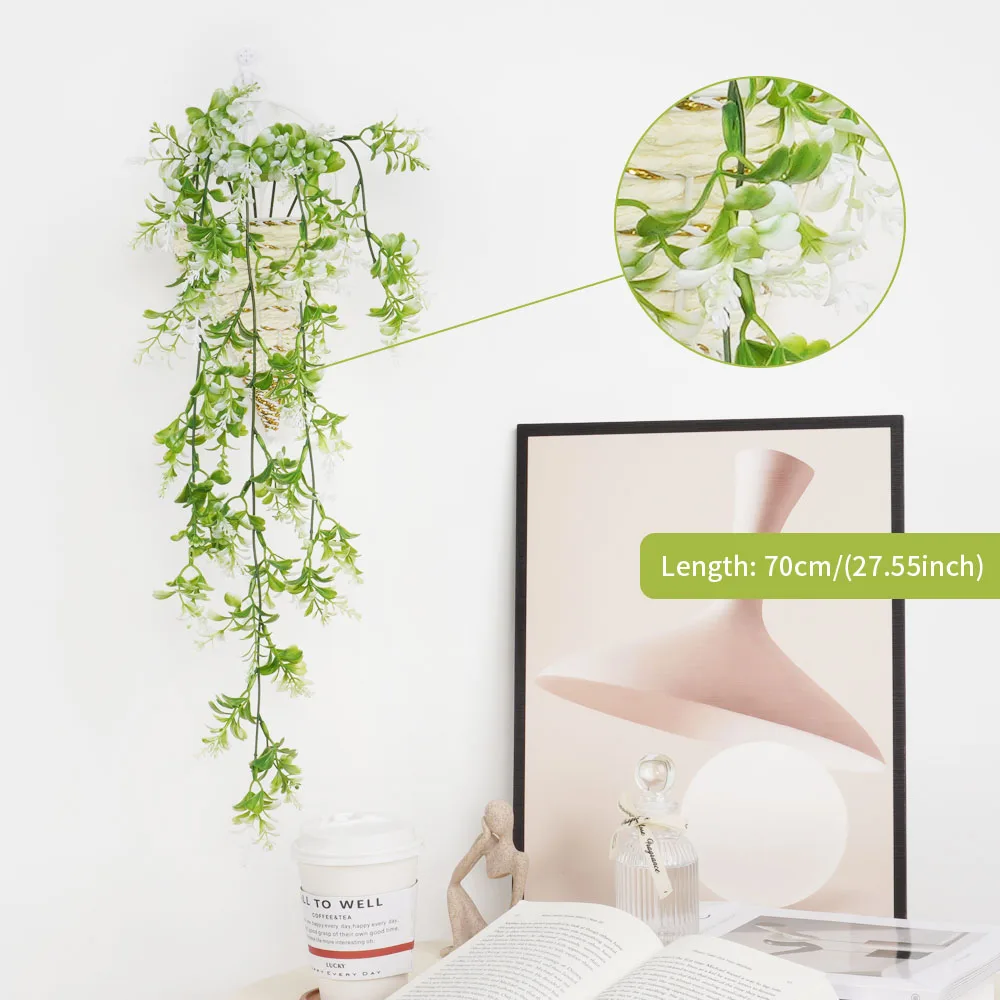 Enhance your space with this artificial eucalyptus rattan hanging plant, featuring a lush green vine design crafted from soft silk material. Measuring in large (L) size, it showcases densely packed, rounded leaves that flow gracefully, perfect for home, garden, wall, or outdoor décor. Available in multiple vibrant colors, including shades labeled T0100, T02901 through T099, this customizable plant adds natural charm without maintenance. Its realistic texture and organic shape create a lively, vivid atmosphere, making it ideal for elevating interior shelves, outdoor walls, or garden displays. Transform your environment effortlessly with this elegant, durable decorative piece designed for exhibition and stylish accenting.