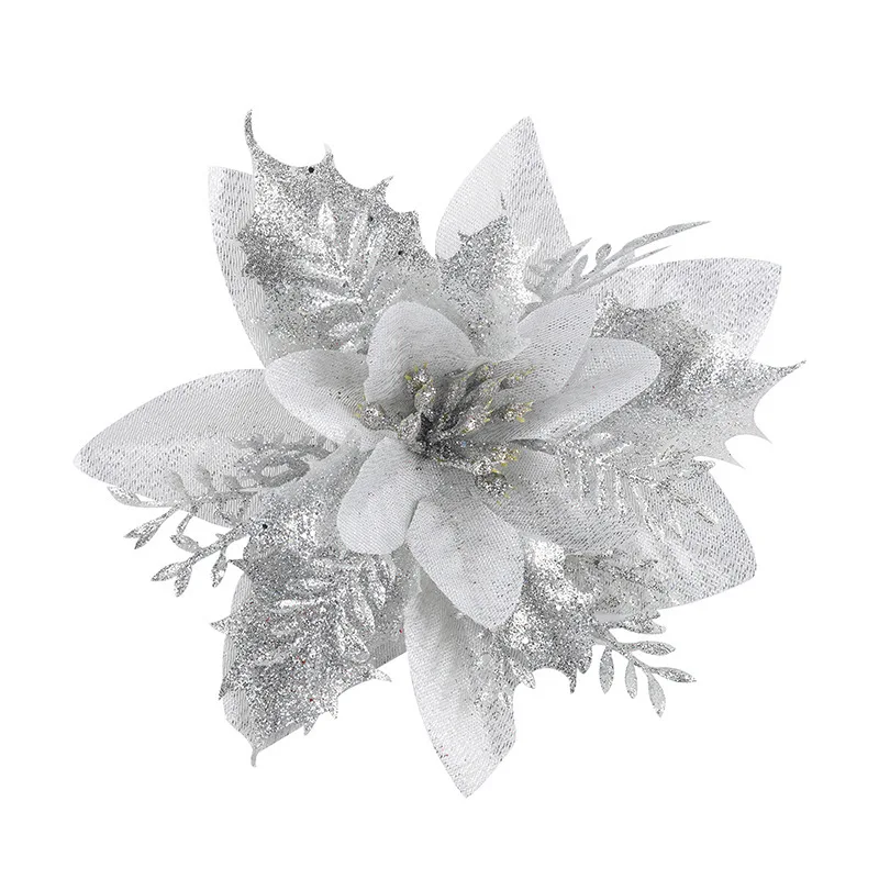 Artificial Glitter Poinsettia Flower Set for Holidays