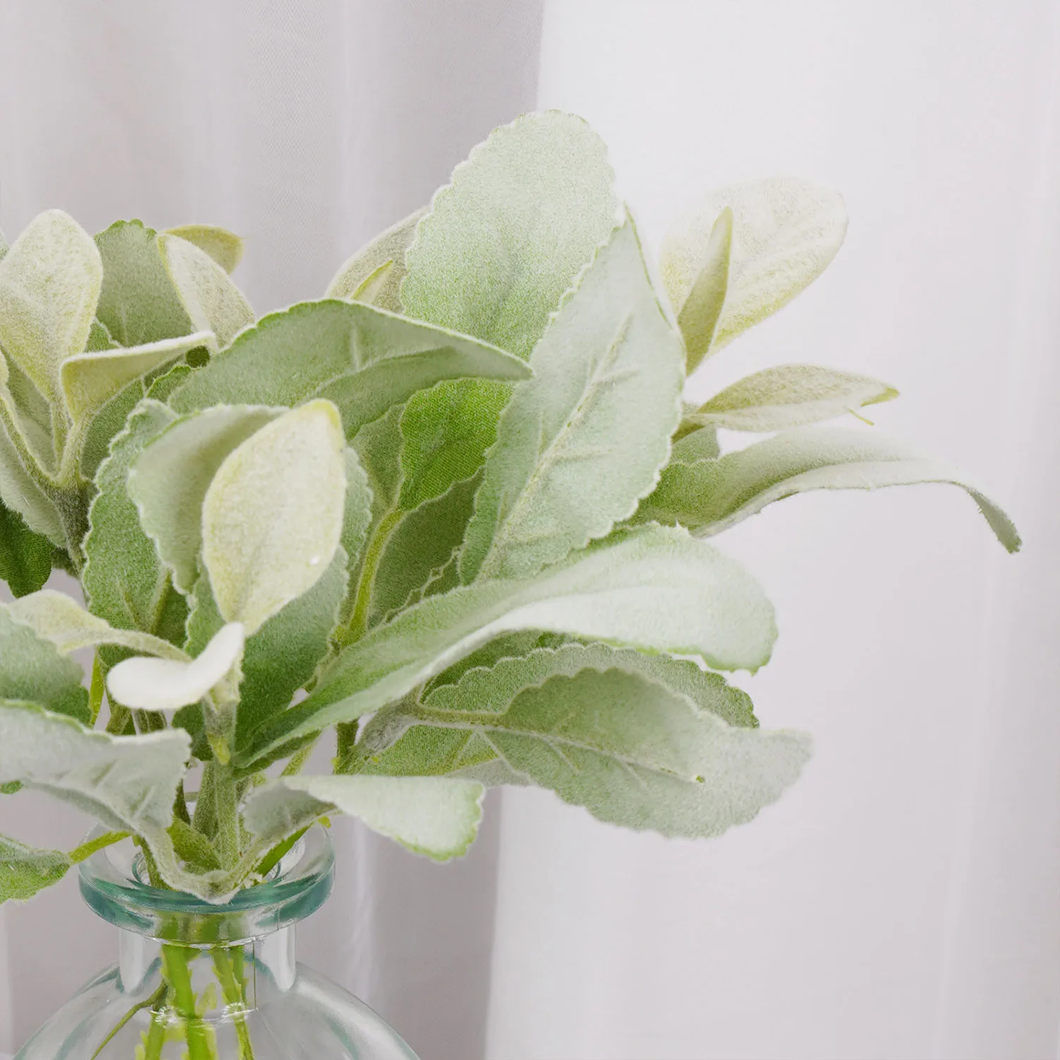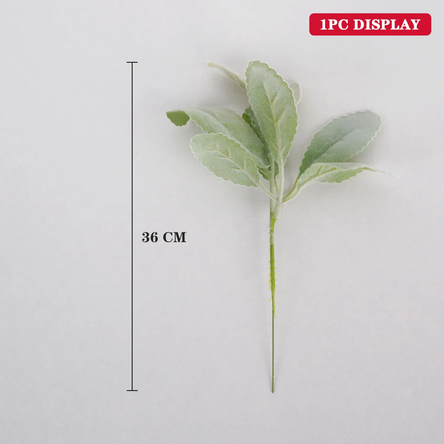 - Set of four lifelike artificial plants with natural green coloration and realistic flocked lamb’s ear and rabbit ear leaves, approximately 36 cm tall to fit various decorative needs seamlessly.