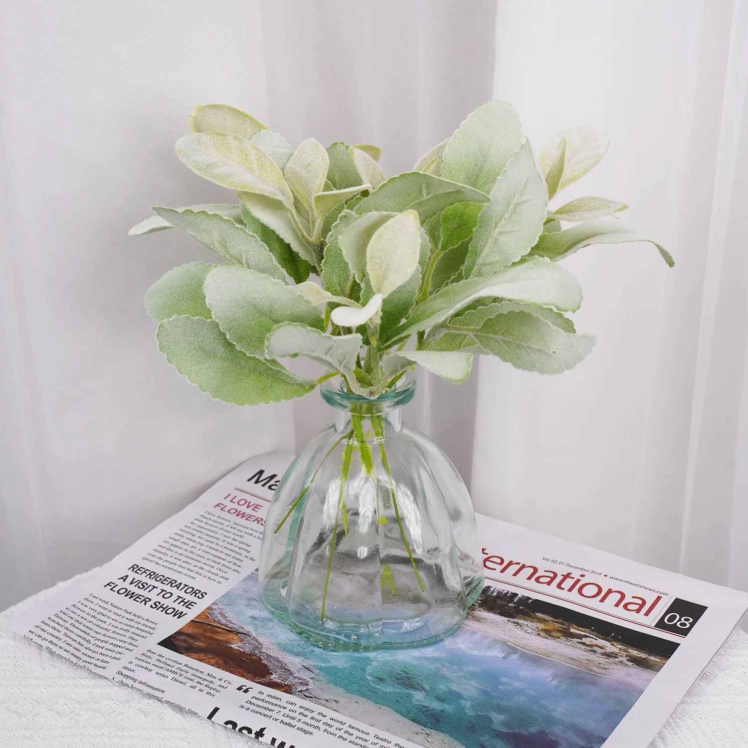 Imagine adding a touch of lush greenery to your space with this stunning artificial plant set. Carefully crafted with silicone leaves, it mimics natural foliage with vibrant green hues, subtle color variations, and realistic textures. Each of the four pieces measures approximately 36 cm tall, featuring varied leaf shapes, including rounded and elongated, with some showcasing fuzzy flocked lamb’s ear and rabbit ear leaves. Perfect for enhancing indoor or outdoor settings, these arrangements bring natural beauty without maintenance. Set in a transparent glass vase, the stems are visible, emphasizing realism and elegance. Whether decorating for weddings, Christmas, parties, or housewarmings, this versatile collection creates a fresh, inviting atmosphere effortlessly.