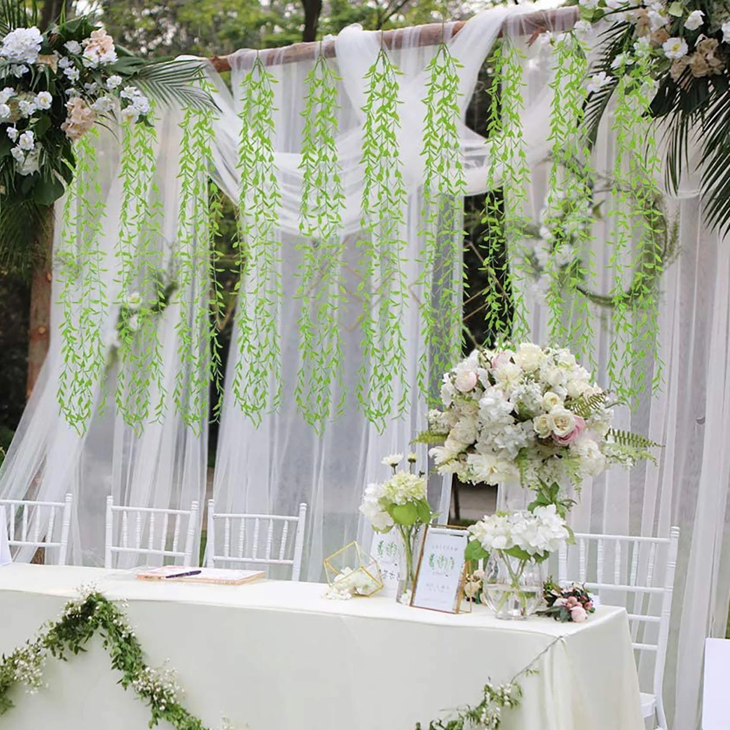 Enhance your decor with this 5-meter artificial hanging vine made of silk, featuring vibrant color options including apple green, blue, gold, light purple, lime green, orange, pink, purple, red, rose red, royal blue, silver, tree green, and yellow. Designed with adjustable flexibility, it mimics natural foliage and is perfect for DIY home, wedding, party, Christmas, and festival decorations such as wreaths and gift boxes. Crafted without high concern chemicals for indoor use, the vine can be straightened after shipping to create lush, organic displays for anniversaries, baby showers, birthdays, bridal showers, engagements, graduations, and housewarmings, adding a touch of nature’s elegance to any celebration.