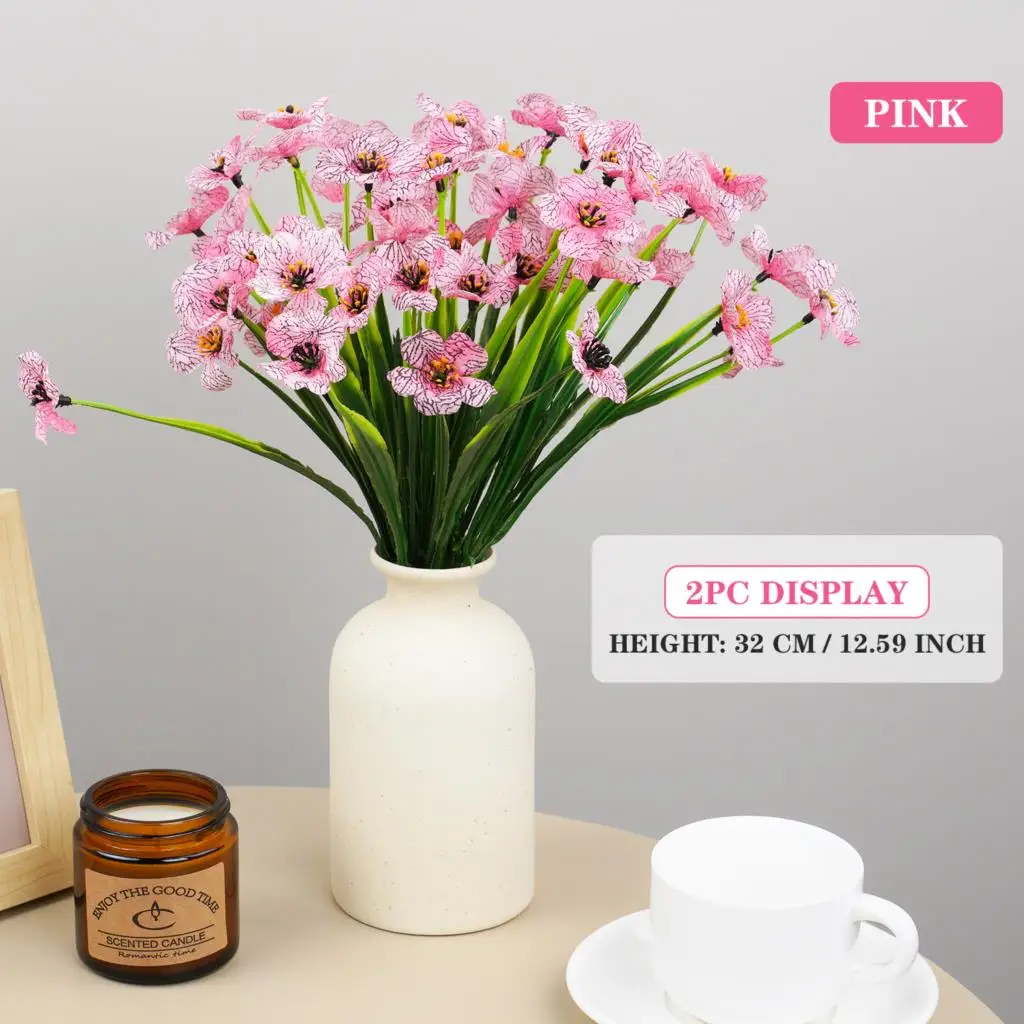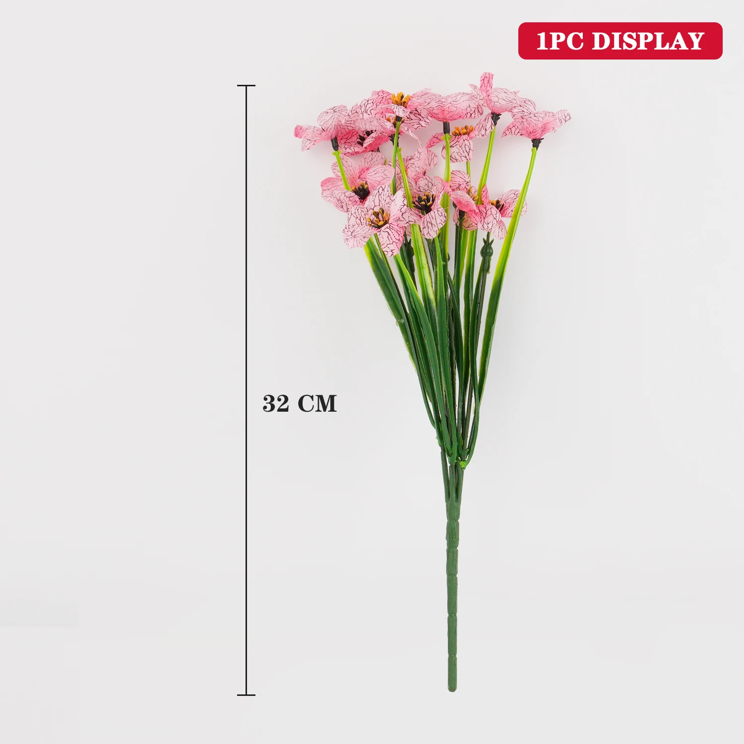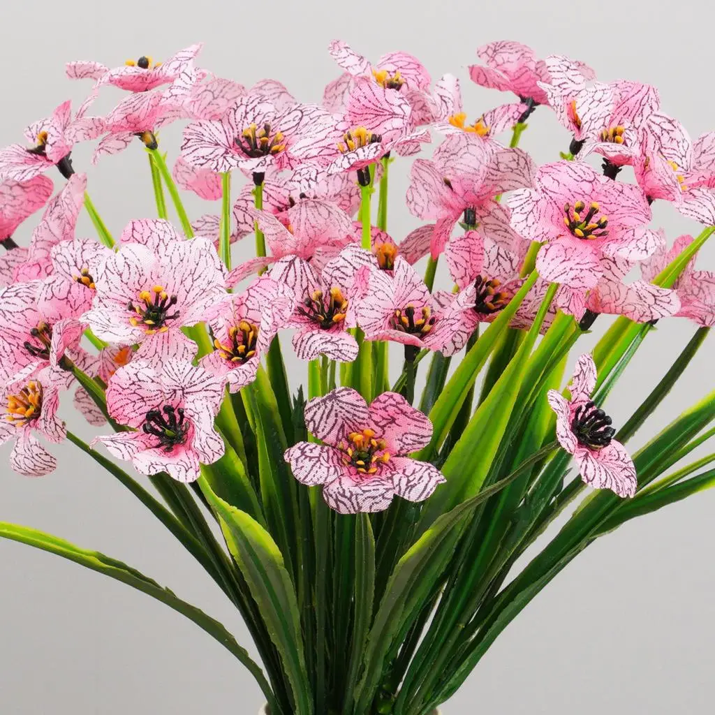 Enhance your space with this realistic 32cm artificial flower, available in elegant pink and white options. Crafted from silk fabric and plastic, it boasts UV resistance and fade-proof durability, making it suitable for indoor home décor, weddings, parties, and commercial settings. The lush, delicately ruffled petals feature intricate dark vein-like markings, with centers accented by dark stamens and bright yellow highlights for a natural, vibrant appearance. Featuring slender green stems, this single-piece floral arrangement exudes elegance and refinement, adding a sophisticated touch to any event or interior design. Perfect for creating a fresh, floral ambiance effortlessly.