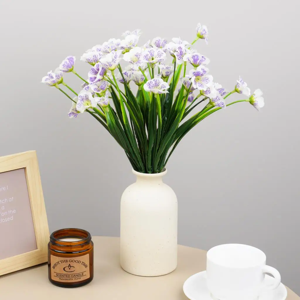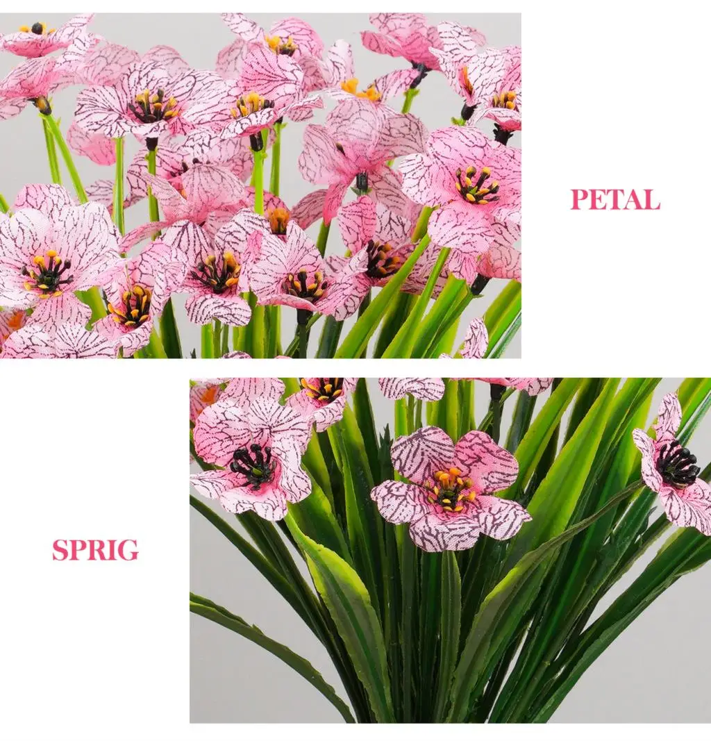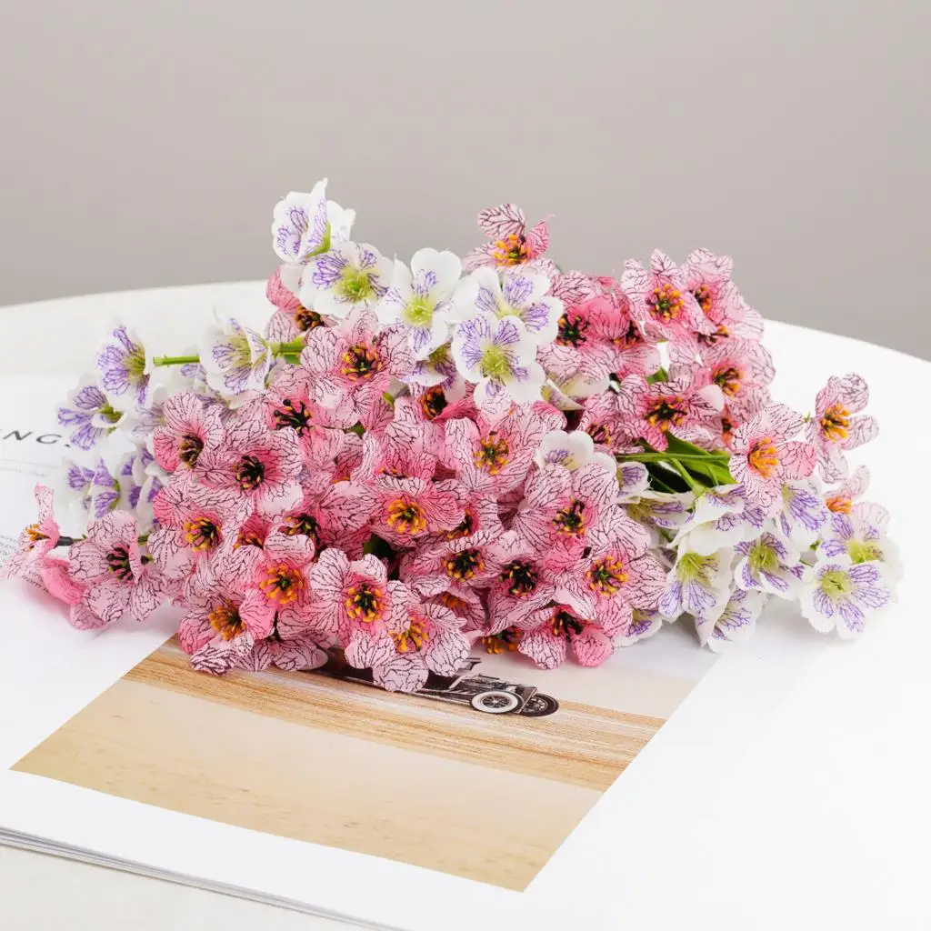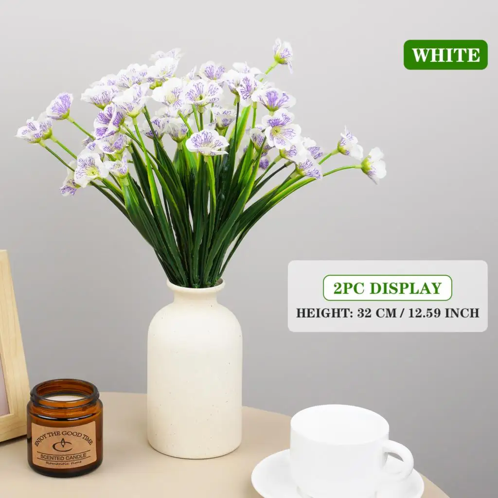 Enhance your space with this realistic 32cm artificial flower, available in elegant pink and white options. Crafted from silk fabric and plastic, it boasts UV resistance and fade-proof durability, making it suitable for indoor home décor, weddings, parties, and commercial settings. The lush, delicately ruffled petals feature intricate dark vein-like markings, with centers accented by dark stamens and bright yellow highlights for a natural, vibrant appearance. Featuring slender green stems, this single-piece floral arrangement exudes elegance and refinement, adding a sophisticated touch to any event or interior design. Perfect for creating a fresh, floral ambiance effortlessly.