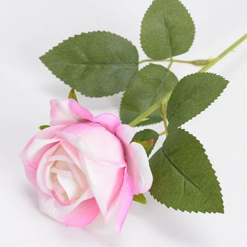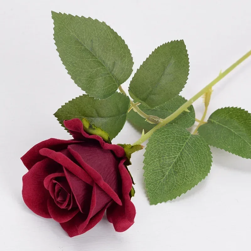 Imagine elevating your space with this beautiful artificial flower bouquet, meticulously crafted from high-quality plastic. The vibrant, deep pink roses with layered, ruffled petals evoke the charm of real flowers, adding elegance to any setting. The slender, light green stem is complemented by textured eucalyptus leaves with serrated edges and prominent veins, creating a natural, organic appearance. Perfect for weddings, parties, or home decoration, this bouquet brings a touch of sophistication to your environment and makes an ideal gift. Its versatile design blends seamlessly with various interior styles, offering lasting beauty without maintenance. Enhance your surroundings now by bringing this exquisite floral arrangement into your favorite space and enjoy its timeless charm.