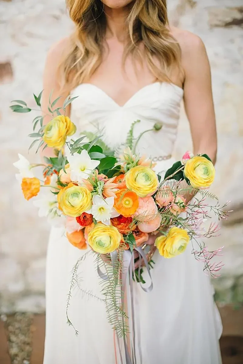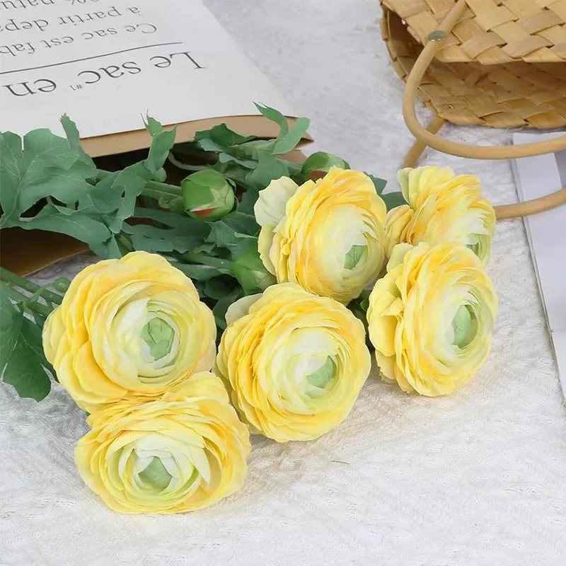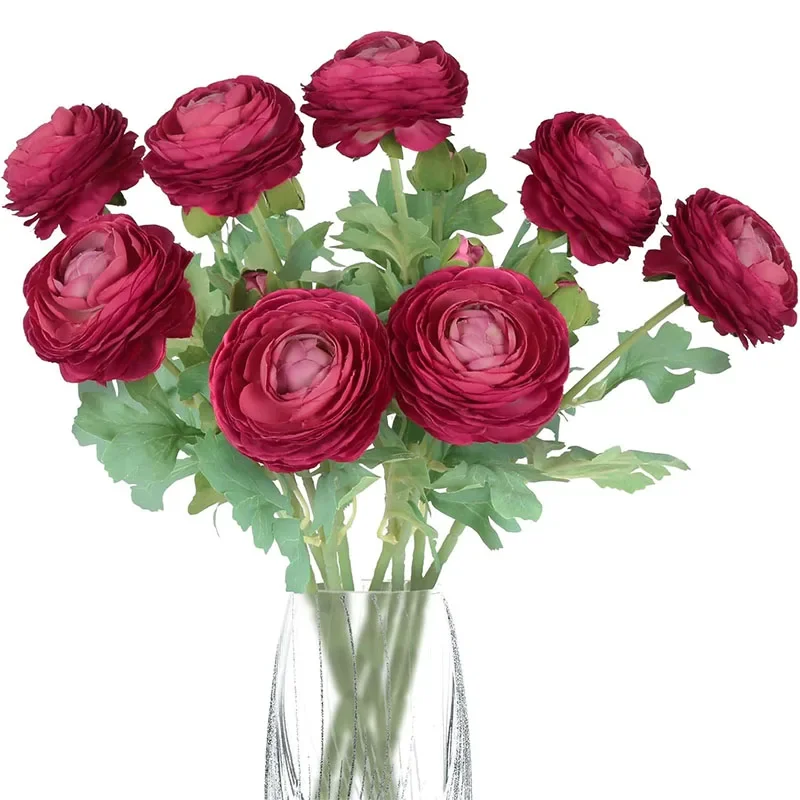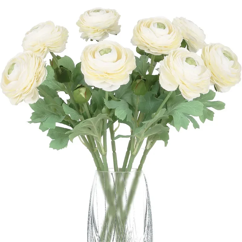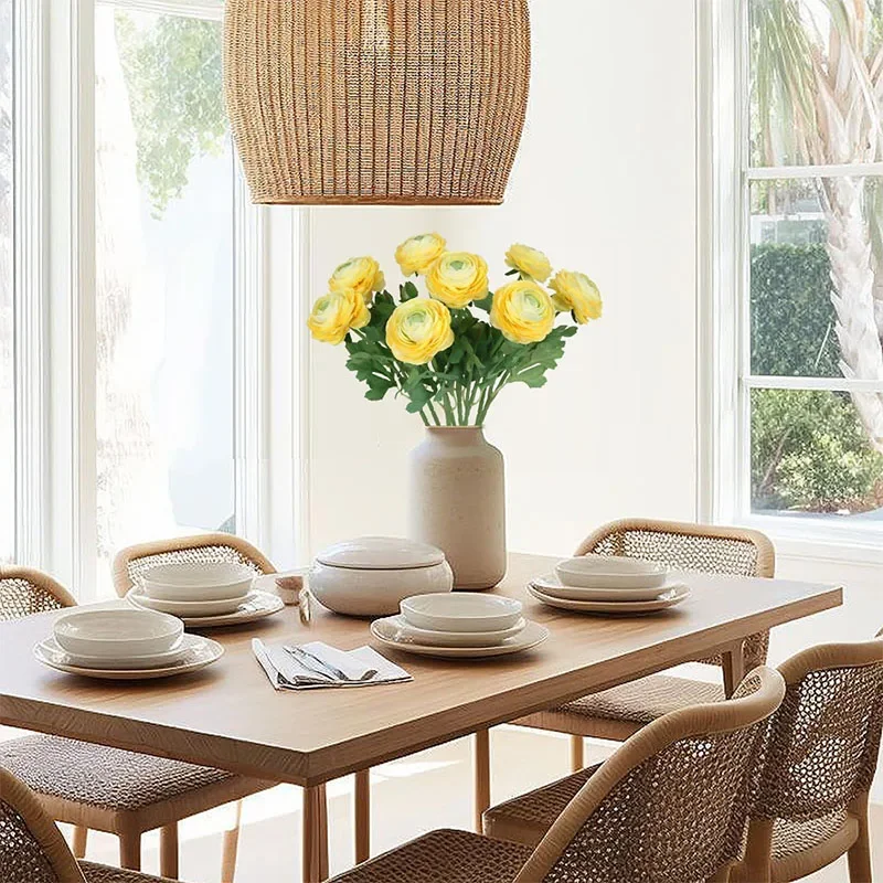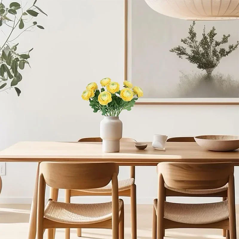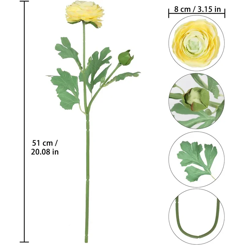 Transform your space with these stunning 8-pack of silk artificial ranunculus flowers, each approximately 51 cm tall with vibrant 8 cm diameter blooms and 2.5 cm buds. Crafted from high-quality silk, these chemically-free flowers feature layered, ruffled petals with a soft, glossy finish that mimic real flowers perfectly. The long, 30 cm green stems adorned with detailed, serrated leaves provide a natural look, ideal for wedding bouquets, centerpieces, or stylish home decor. Available in bright yellow, elegant red, and classic white, these versatile faux flowers let you create personalized arrangements that bring warmth, elegance, and charm to any indoor setting.
