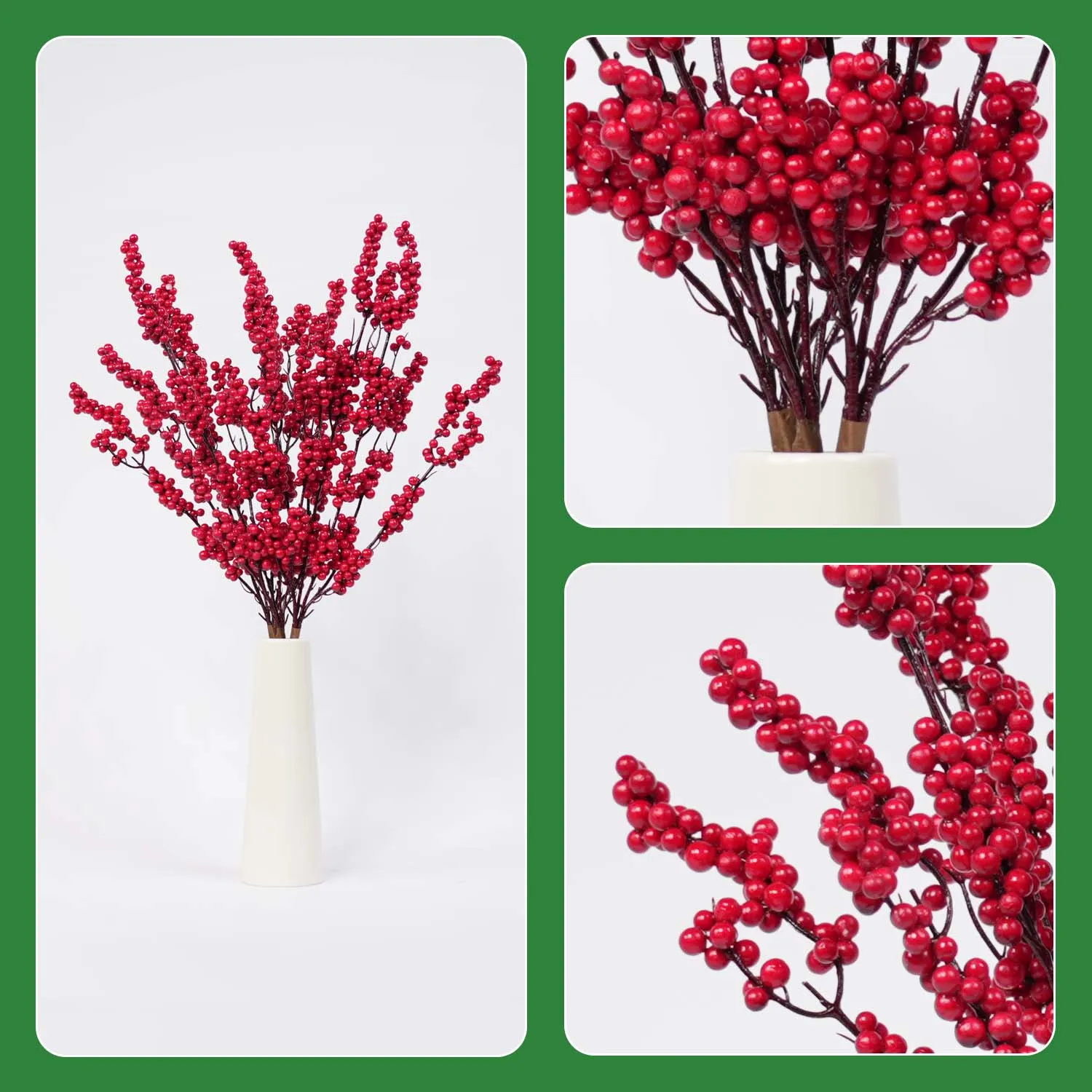 - The berries are small, round, and bright red, arranged to fan out naturally for a realistic, textured appearance that adds festive charm to any setting.