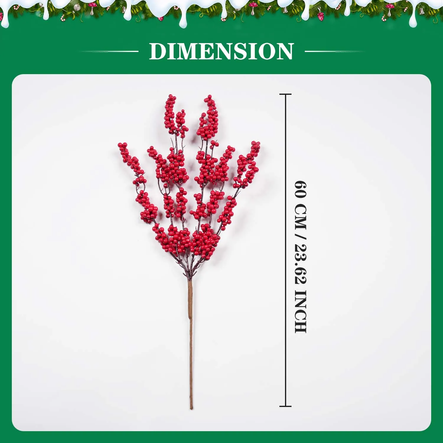- This 60cm artificial red berry branch features densely packed glossy red berries along slender stems, creating a vivid and lively holiday decoration suitable for various DIY projects.