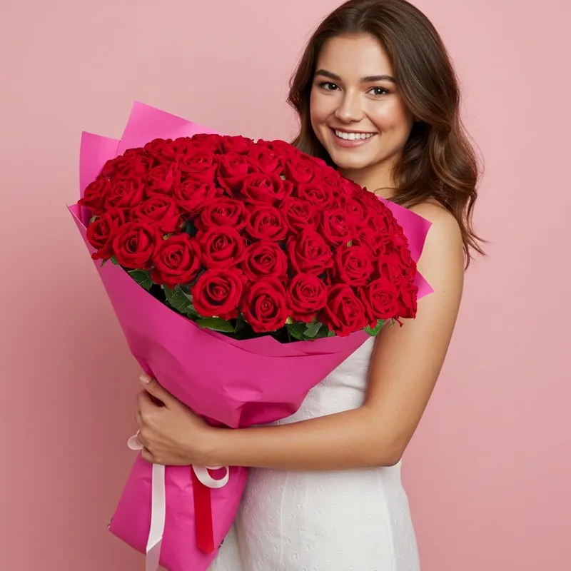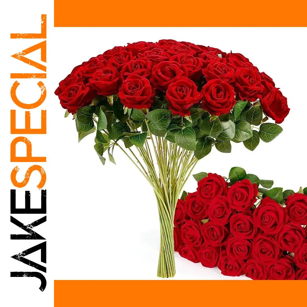 Immerse yourself in the timeless beauty of this artificial red rose bouquet, meticulously crafted to replicate nature's elegance. Each of the 32 lifelike roses measures 50 cm long, with a richly detailed flower head spanning 7 cm in diameter. The velvety petals, crafted from silk and velvet materials, boast a deep, vibrant red hue and a subtle sheen that captures the essence of real roses. The textured green stems, adorned with veined dark green leaves, add to their authentic appearance. Perfect for wedding decorations, home décor, or special celebrations, this bouquet offers long-lasting beauty without wilting or fading. Whether decorating a romantic setting or enhancing your space, these roses deliver natural charm effortlessly.