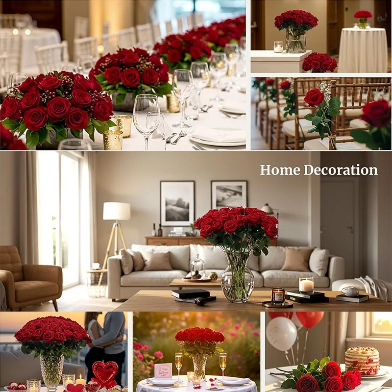 Transform your space with the timeless charm of this artificial rose bouquet. Its realistic appearance and durable build make it an ideal choice for anyone seeking elegance for long-term decoration. Envision these lush, velvety roses accenting your wedding arch, brightening your living room, or becoming a focal point at your celebration. Easy to arrange and maintain, they will create a warm, inviting atmosphere wherever they are placed. Invest in these stunning roses now and enjoy the blend of beauty, sophistication, and lasting quality that will impress your guests and bring your decor vision to life.