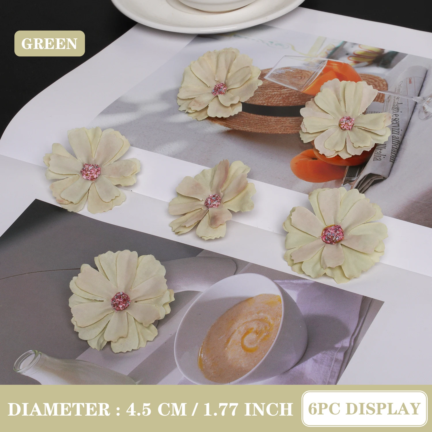 - High-quality silk flower measuring 4.5 cm in diameter, offering realistic texture and vibrant color options for versatile decorations.