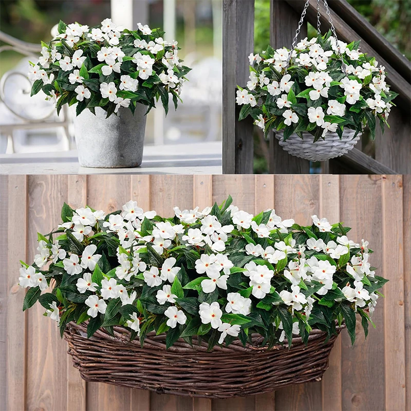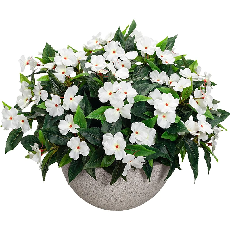 Imagine transforming your outdoor or indoor space effortlessly with this beautiful bouquet of artificial white Impatiens. Its realistic textures and vibrant details create a lively floral display that lasts without fading. Perfect for celebrating special moments or elevating everyday decor, this arrangement offers timeless elegance and low-maintenance convenience. Whether you want to brighten up a patio, add charm to a table centerpiece, or create a welcoming atmosphere in your home, this bouquet is your ideal choice. Invest in lasting beauty—bring this stunning, realistic floral display into your life today and enjoy its charm for years to come.