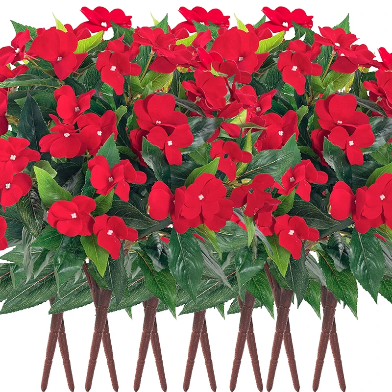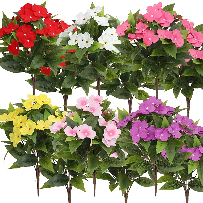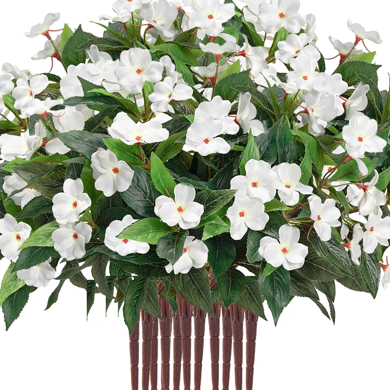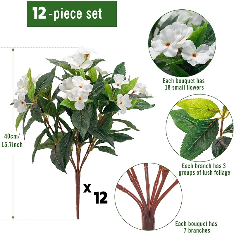 - This artificial Impatiens bouquet contains 12 silk flowers with realistic textures, each with five rounded petals and vibrant orange centers for authentic charm.