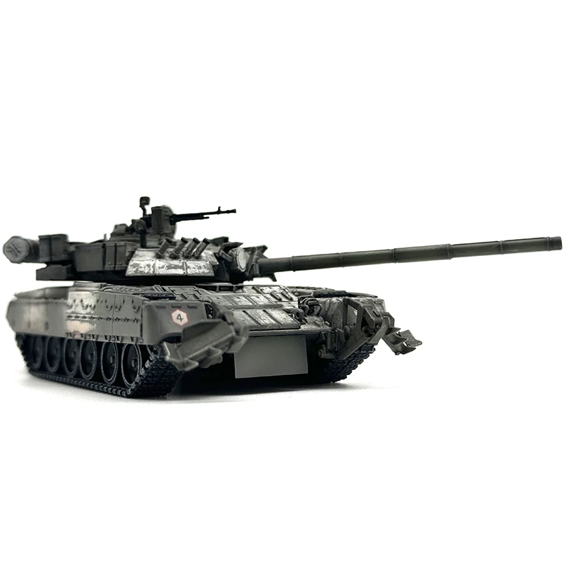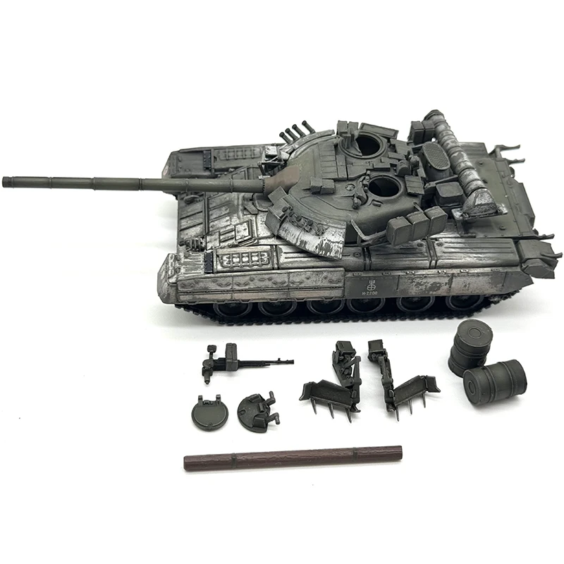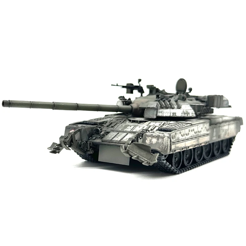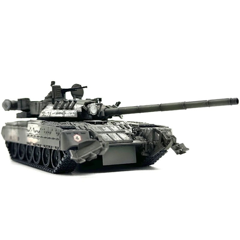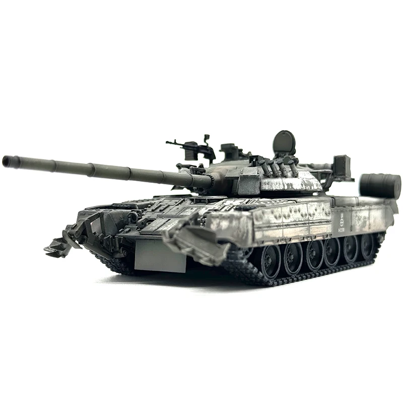 Step into the world of military history with this highly detailed ARTISAN 1:72 scale plastic Russian T80U main battle tank model. Crafted from durable PVC plastic, this static display piece showcases a weathered, metallic grayish-green finish that captures a battle-hardened look. The finely crafted turret and body feature intricate details such as realistic hatches, periscopes, and mounted equipment, giving it an authentic appearance. The model’s meticulous weathering effects, dirt, and wear marks enhance its rugged, utilitarian aesthetic. The separate, detailed tracks and suspension system, with individual links, add to the realism. Perfect for military enthusiasts and collectors, this model brings history to life on your shelf or display case, offering a striking visual appeal and a powerful presence.