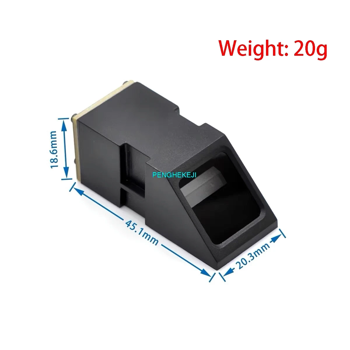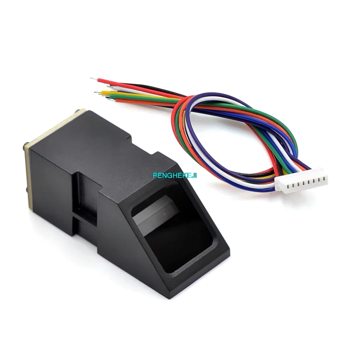 Enhance your biometric systems with the PENGHEKEJI AS608 Optical Fingerprint Sensor Module, featuring a sleek black rectangular housing with a semi-transparent scanning window and vibrant multicolored wiring harness. Equipped with a 640×480 pixel image sensor, it delivers rapid <0.4 second image processing and under 300 ms search time. Operating at 3.0-3.6V with 30-60mA current, it supports UART at 57600 bps and USB 2.0 full speed for versatile data transfer. With a storage capacity of 200 fingerprint templates, built-in finger detection, and a compact design with 8-core 1.25mm socket interface, this module offers reliable performance in diverse operating environments from -20°C to 60°C, humidity below 90%.