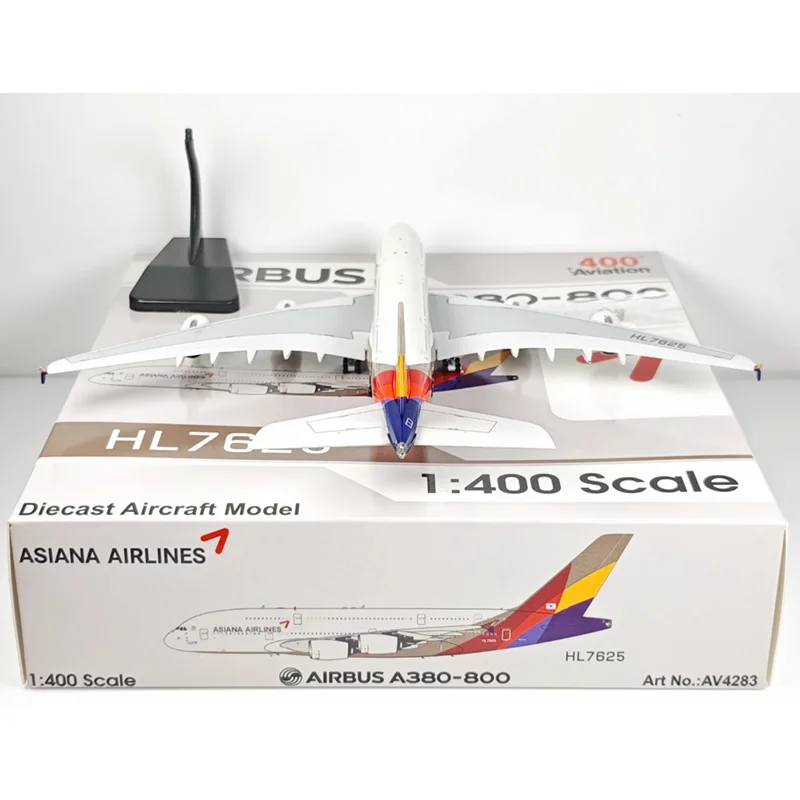 The Diecast 1/400 Scale Asiana Airlines A380-800 model is a meticulously crafted collectible designed for aviation enthusiasts. Featuring a stunning white body adorned with Asiana’s vibrant livery, including a colorful tail design in shades of red, blue, and yellow, this model showcases intricate details. The aircraft is labeled with the registration number HL7625 and comes with a display stand, allowing it to be showcased elegantly. With a wingspan of 19.95 cm, this alloy and plastic model is perfect for personal collections and home décor, making it a valuable piece for any model airplane aficionado.
