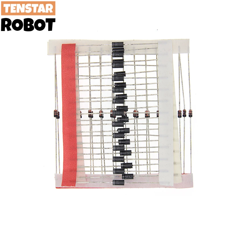 - Each diode features a sleek black, cylindrical body with a metallic band for easy orientation, ensuring reliable placement and consistent operation in your circuits.