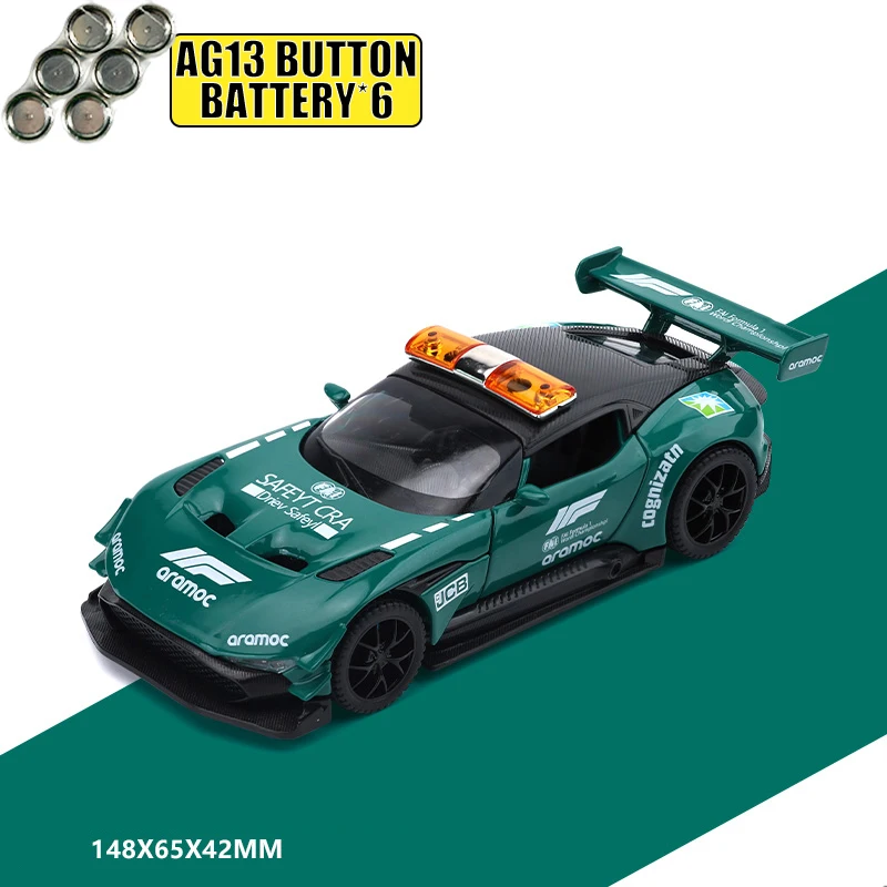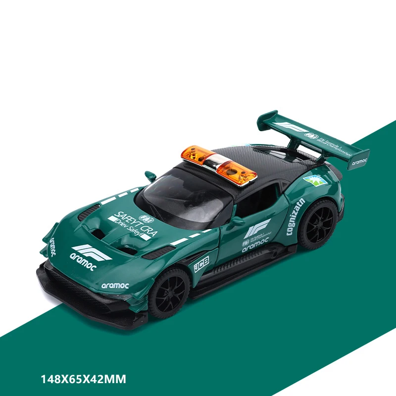 Envision owning a piece of racing excellence with this detailed 1:32 scale diecast model of the Aston Martin Vulcan Safety Car. Crafted from high-quality metal alloy, it features a vibrant green body accented with decals and sponsor logos, capturing the high-performance essence of the original. The shiny, reflective surface highlights expert craftsmanship, while the aerodynamic design with sharp contours emphasizes speed and agility. Equipped with sound and light functions, it features a prominent rear wing spoiler and realistic black wheels with rubber tires. Push the pull-back mechanism to activate dynamic movement, making it a perfect display piece. Heavy enough to stand out, this model is ideal for adult car enthusiasts and collectors seeking a sophisticated addition to their home decor.