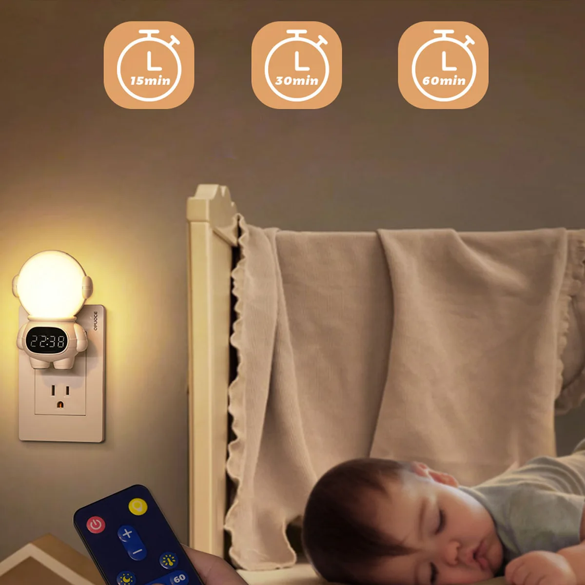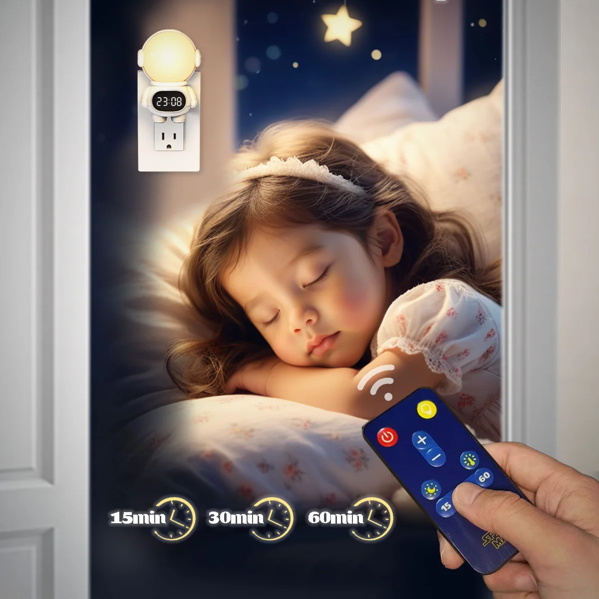 Imagine transforming your space with this adorable astronaut-themed night light, creating a cozy and whimsical atmosphere. Its playful design features a round, glowing globe resembling the astronaut’s head, emitting a soft, bright light perfect for nighttime comfort. The beige plastic body with cute ear-like protrusions and a modern digital display make it both functional and stylish. Thanks to remote control technology, you can effortlessly adjust brightness, set timers, or turn it on/off from across the room. Compact at 10 cm long, it’s ideal for bedrooms, study rooms, or living areas where a touch of personality is desired. Enjoy the perfect fusion of fun and functionality with this delightful space-inspired lamp you’ll love to keep close every night.