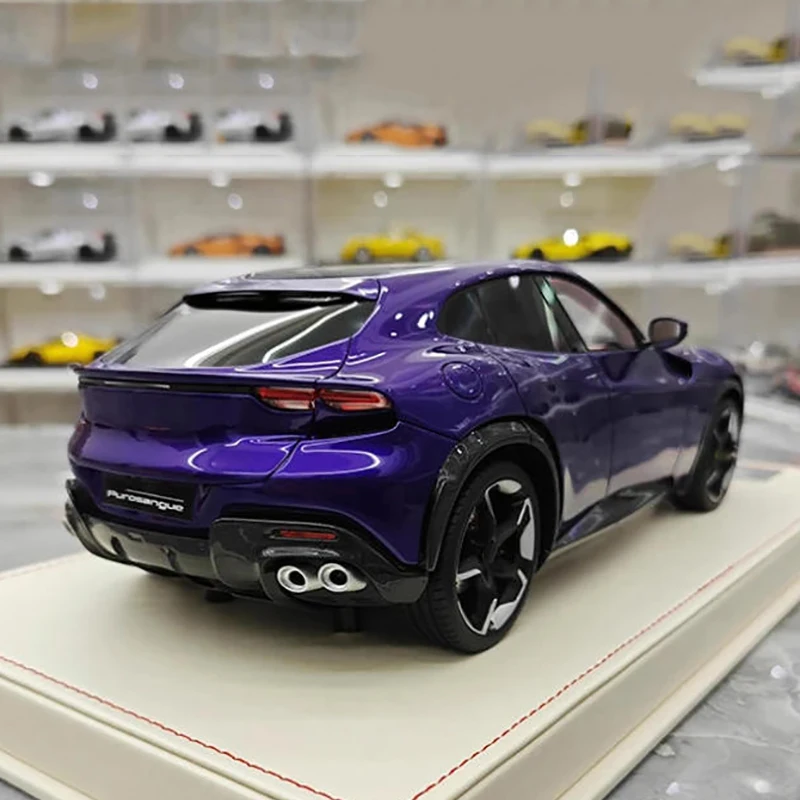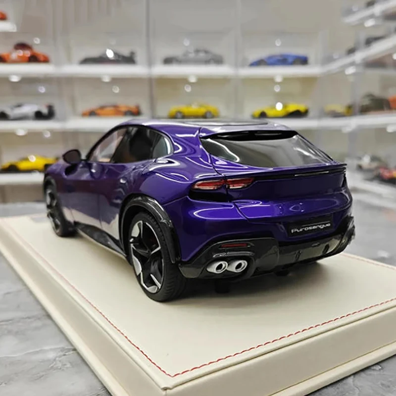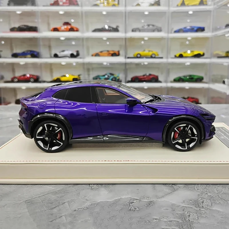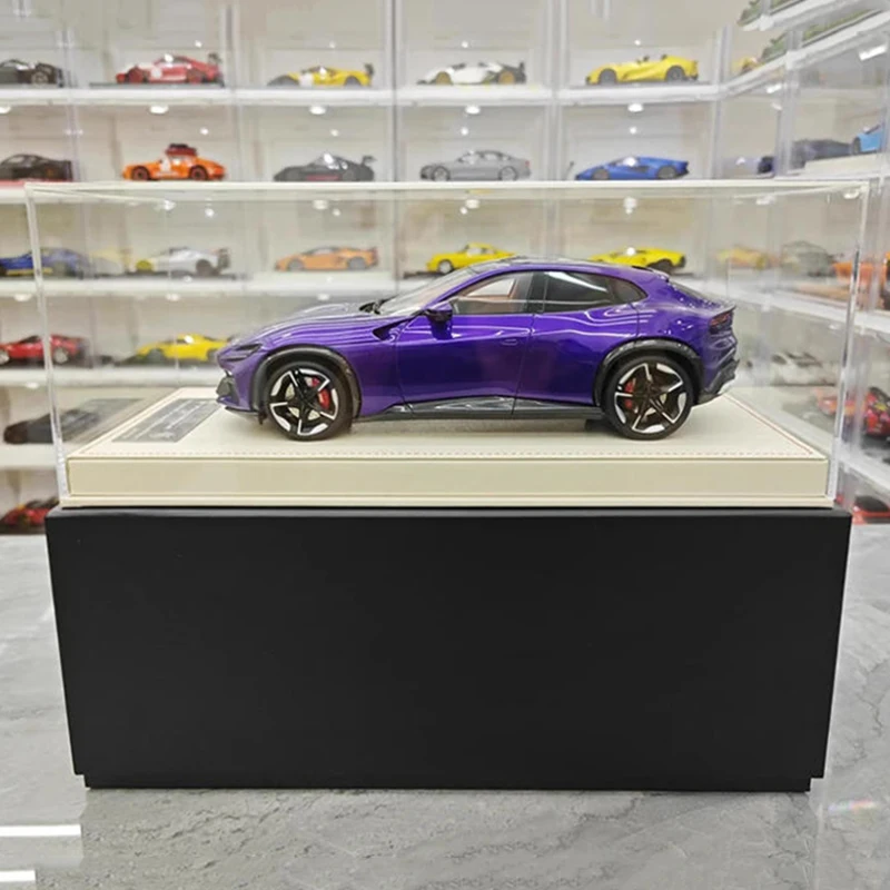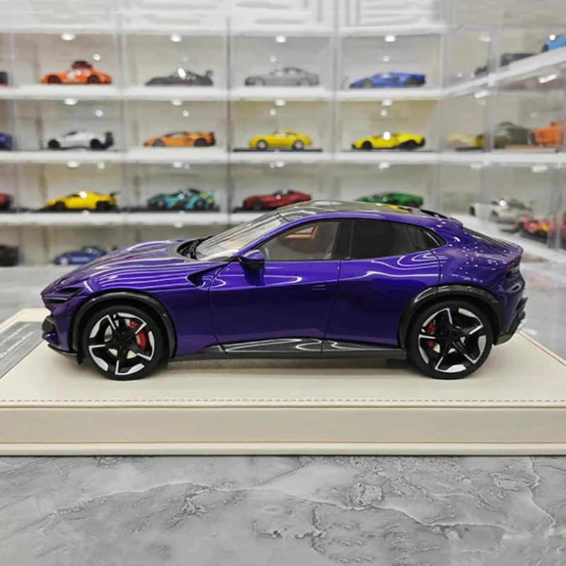 Imagine owning a piece of automotive excellence with this exquisitely detailed miniature model of the AT Model Purosangue V12 in a striking purple finish. Measuring approximately 28 centimeters long, 10 centimeters wide, and 10 centimeters high, this 1:18 scale resin replica embodies sleek aerodynamics and high-performance aesthetics. Its glossy purple color accentuates the dynamic curves, sharp lines, and sculpted hood with subtle ridges. The model’s low, aggressive stance, tinted windows, and black five-spoke alloy wheels add a luxurious sporty touch. Whether displayed in your collection or admired as a detailed showpiece, this model captures the essence of the original vehicle’s energetic presence and design sophistication in a compact form.